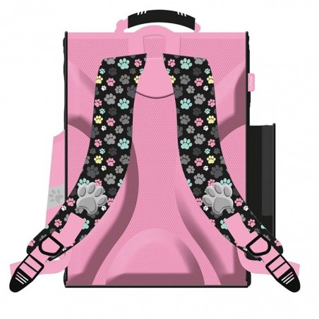 Ghiozdan pentru clasele I-IV, 1 compartiment, 3 buzunare, Majewski, Colectia My Little Friend, un ghiozdan rigid, modern si confortabil, de foarte buna calitate, finisat si decorat cu tehnologii avansate. Ghiozdanul este confectionat din materiale impermeabile, rezistente la uzura si inghet. Ghiozdanul este deosebit de incapator, cu o compartimentare excelenta, avand spatii pentru carti, caiete, accesorii si rechizite, asigurand astfel o foarte buna organizare. Prevazut cu un compartiment principal ce se inchide cu doua fermoare si un buzunar frontal ce se inchide cu fermoar, ghiozdanul este deosebit de spatios si practic. Compartimentul principal al ghiozdanului este dotat cu un buzunar interior cu un inchidere cu fermoar, si doua separatoare. In interiorul compartimentului principal se afla un spatiu pentru personalizare, unde se poate nota numele, adresa si numarul de telefon. Ghiozdanul este dotat cu un buzunar frontal, precum si cu doua buzunare laterale ideale pentru a pastra recipientul cu apa (un buzunar cu fermoar si un buzunar tip plasa). Ghiozdanul este dotat cu elemente reflectorizante pe partea din fata, pe laterale si pe bretele. Ghiozdanul este prevazut cu un maner acoperit cu o portiune cauciucata, ergonomica, pentru a putea fi purtat si in mana. Spatele si bretelele sunt intarite si buretate cu un burete gros, oferindu-le fermitate si avand rolul de a proteja umerii si spatele. Spatele ghiozdanului este buretat ergonomic, dotat cu o zona de contact cu plasa, pentru o buna circulatie a aerului. Bretelele ghiozdanului sunt ajustabile, pentru ca acesta sa poata fi aranjat perfect pe spate. Fermoarele au zona de prindere cauciucata si profilata, pentru prindere usoara. Dimensiunile ghiozdanului sunt urmatoarele: 34x26x16 cm.
