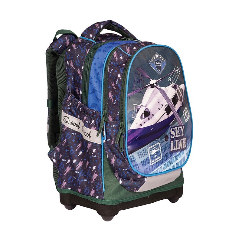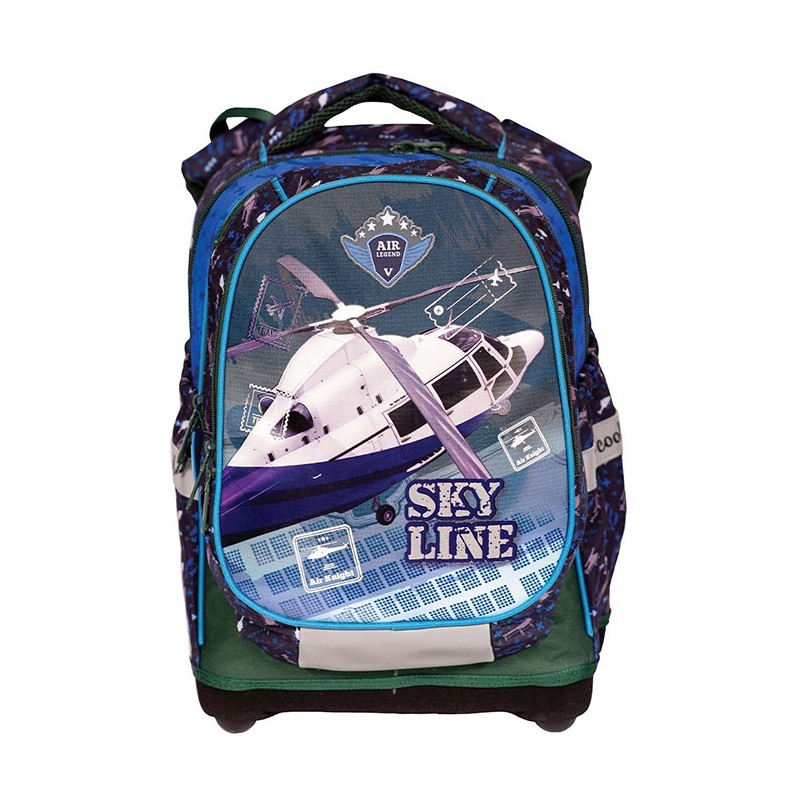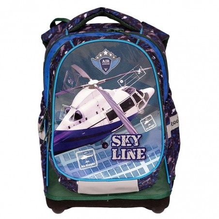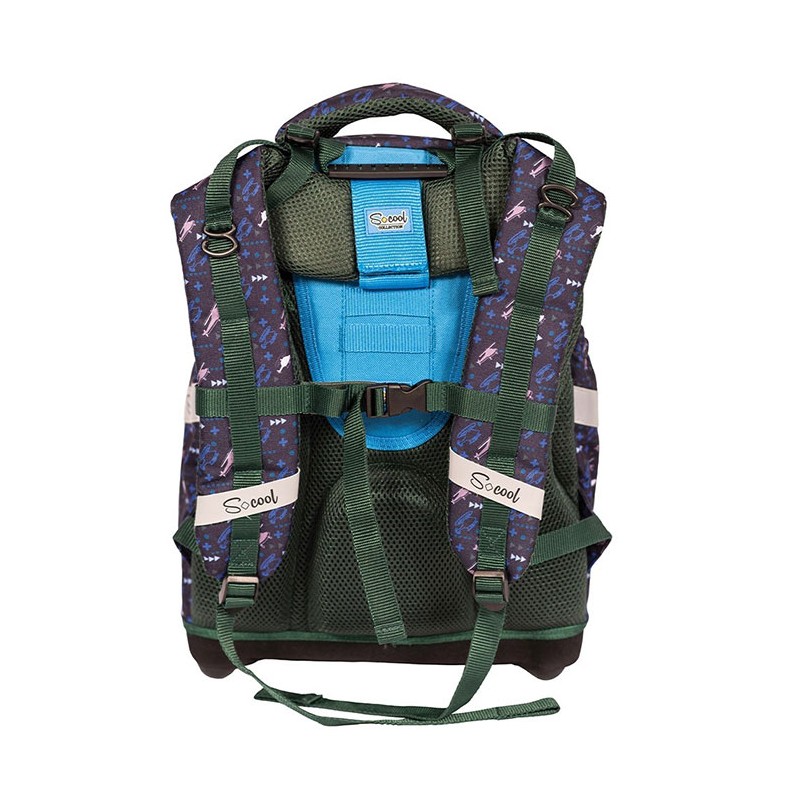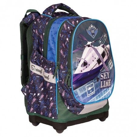 Ghiozdan pentru clasele V-VIII, S-cool Sky Line, un ghiozdan modern si confortabil, de foarte buna calitate. Ghiozdanul este confectionat din materiale impermeabile, rezistente la uzura. Ghiozdanul este deosebit de incapator, cu o compartimentare excelenta, avand spatii pentru carti, caiete, accesorii si rechizite, asigurand astfel o foarte buna organizare. Prevazut cu un compartiment principal ce se inchide cu fermoar si un compartiment frontal ce se inchide tot cu fermoar, ghiozdanul este deosebit de spatios si practic. Ghiozdanul este prevazut cu un compartiment special pentru pastrarea si transportul laptopului. Ghiozdanul este prevazut cu doua buzunare laterale cu elastic, ideale pentru a pastra recipientul cu apa. Ghiozdanul este prevazut cu un maner buretat pentru a putea fi purtat si in mana. Spatele si bretelele sunt intarite si buretate cu un burete gros, oferindu-le fermitate si avand rolul de a proteja umerii si spatele. Spatele ghiozdanului este buretat ergonomic, dotat cu o zona de contact cu plasa, pentru o buna circulatie a aerului. Bretelele ghiozdanului sunt ajustabile, pentru ca acesta sa poata fi aranjat perfect pe spate. Ghiozdanul este prevazut cu cusaturi triple, pentru o mai mare rezistenta in timp. Fermoarele au zona de prindere cauciucata si profilata, pentru prindere usoara. Baza ghiozdanului este tare, realizata din spuma EVA, si prevazuta cu patru picioruse pentru a preveni contactul direct cu pardoseala, expunerea la apa sau murdarie. Dimensiunile ghiozdanului sunt urmatoarele: 43x34x22 cm.