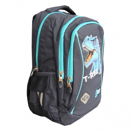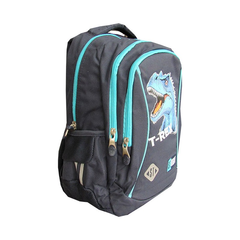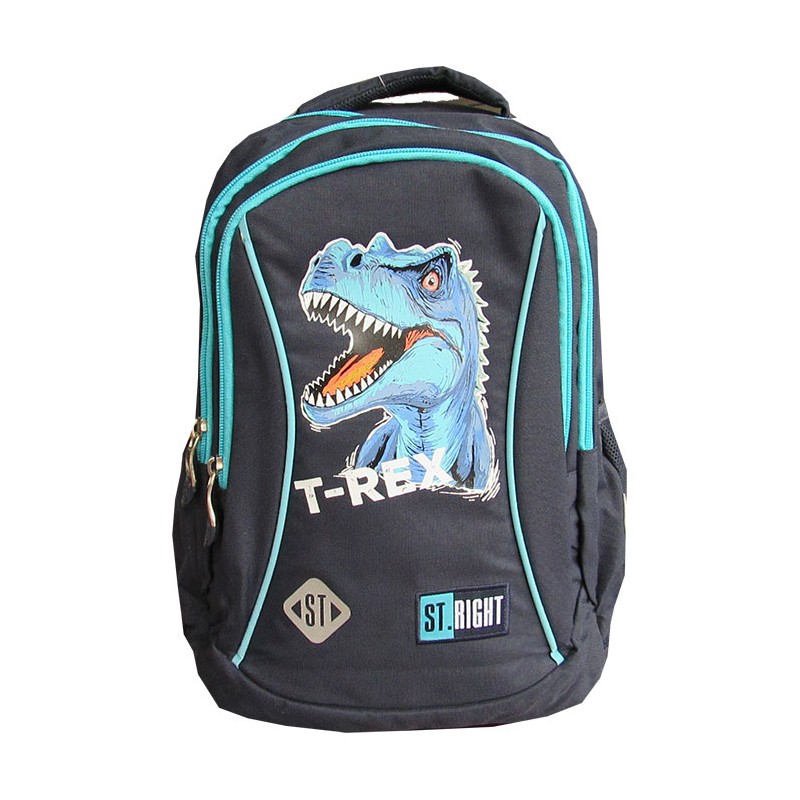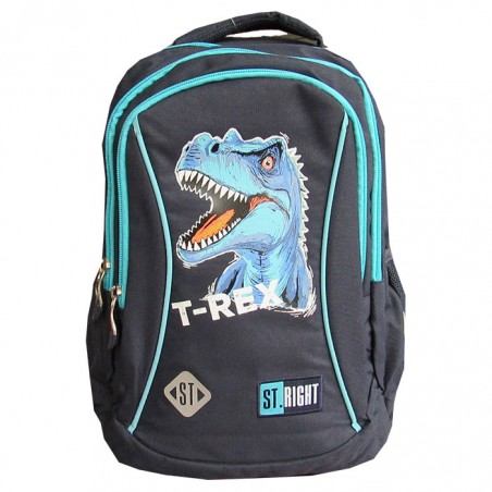 Ghiozdan pentru clasele I-IV, 3 compartimente, Majewski, Gama St. Right, Colectia Blue T-Rex, un ghiozdan modern si confortabil, de foarte buna calitate, finisat si decorat cu tehnologii avansate. Ghiozdanul este confectionat din materiale impermeabile, rezistente la uzura si inghet. Ghiozdanul este deosebit de incapator, cu o compartimentare excelenta, avand spatii pentru carti, caiete, accesorii si rechizite, asigurand astfel o foarte buna organizare. Prevazut cu un compartiment principal ce se inchide cu doua fermoare si doua compartimente frontale ce se inchid cu fermoar, ghiozdanul este deosebit de spatios si practic. Compartimentul principal al ghiozdanului este dotat cu un buzunar special pentru a pastra diverse articole de mici dimensiuni. Unul din compartimentele frontale ale ghiozdanului este dotat cu mai multe separatoare interioare (destinate articolelor precum chei, bani, memory-stick-uri, accesorii telefon, instrumente de scris sau alte obiecte importante de mici dimensiuni), precum si cu un breloc detasabil pentru cheie. Ghiozdanul este prevazut cu doua buzunare laterale cu elastic, ideale pentru a pastra recipientul cu apa. Ghiozdanul este dotat cu elemente reflectorizante pe partea din fata, pe bretele si pe laterale. Ghiozdanul este prevazut cu un maner buretat pentru a putea fi purtat si in mana. Spatele si bretelele sunt intarite si buretate cu un burete gros, oferindu-le fermitate si avand rolul de a proteja umerii si spatele. Spatele ghiozdanului este buretat ergonomic, dotat cu o zona de contact cu plasa, pentru o buna circulatie a aerului. Bretelele ghiozdanului sunt ajustabile, pentru ca acesta sa poata fi aranjat perfect pe spate. Fermoarele au zona de prindere cauciucata si profilata, pentru prindere usoara. Cheitele fermoarului compartimentului principal permit utilizarea unui lacat sau a unei criptari TSA. Baza ghiozdanului are zone de contact cauciucate pentru protejare la umezeala. Dimensiunile ghiozdanului sunt urmatoarele: 40x26x13 cm.