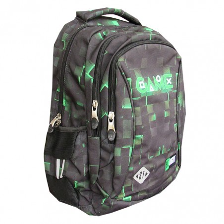 Ghiozdan pentru clasele I-IV, 3 compartimente, Majewski, Gama St. Right, Colectia Green Game, un ghiozdan modern si confortabil, de foarte buna calitate, finisat si decorat cu tehnologii avansate. Ghiozdanul este confectionat din materiale impermeabile, rezistente la uzura si inghet. Ghiozdanul este deosebit de incapator, cu o compartimentare excelenta, avand spatii pentru carti, caiete, accesorii si rechizite, asigurand astfel o foarte buna organizare. Prevazut cu un compartiment principal ce se inchide cu doua fermoare si doua compartimente frontale ce se inchid cu fermoar, ghiozdanul este deosebit de spatios si practic. Compartimentul principal al ghiozdanului este dotat cu un buzunar special pentru a pastra telefonul sau castile. Unul din compartimentele frontale este dotat cu mai multe separatoare interioare (destinate articolelor precum chei, bani, memory-stick-uri, accesorii telefon, instrumente de scris sau alte obiecte importante de mici dimensiuni), precum si cu un breloc detasabil pentru cheie. Ghiozdanul este prevazut cu doua buzunare laterale cu plasa, ideale pentru a pastra recipientul cu apa. Ghiozdanul este dotat cu elemente reflectorizante pe partea din fata, pe laterale si pe bretele. Ghiozdanul este prevazut cu un maner buretat pentru a putea fi purtat si in mana. Spatele si bretelele sunt intarite si buretate cu un burete gros, oferindu-le fermitate si avand rolul de a proteja umerii si spatele. Spatele ghiozdanului este buretat ergonomic, dotat cu o zona de contact cu plasa, pentru o buna circulatie a aerului. Bretelele ghiozdanului sunt ajustabile, pentru ca acesta sa poata fi aranjat perfect pe spate. Fermoarele au zona de prindere cauciucata si profilata, pentru prindere usoara. Cheitele fermoarului compartimentului principal permit utilizarea unui lacat sau a unei criptari TSA. Baza ghiozdanului are zone de contact cauciucate pentru protejare la umezeala. Dimensiunile ghiozdanului sunt urmatoarele: 42x29x18 cm.