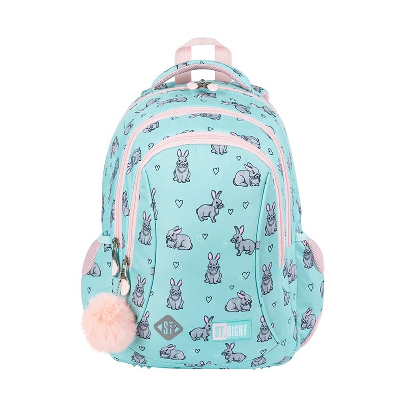 Ghiozdan pentru clasele I-IV, 3 compartimente, Majewski, Gama St. Right, Colectia Grey Rabbits, un ghiozdan modern si confortabil, de foarte buna calitate, finisat si decorat cu tehnologii avansate. Ghiozdanul este confectionat din materiale impermeabile, rezistente la uzura si inghet. Ghiozdanul este deosebit de incapator, cu o compartimentare excelenta, avand spatii pentru carti, caiete, acceso-rii si rechizite, asigurand astfel o foarte buna organizare. Prevazut cu un compartiment principal ce se inchide cu doua fermoare si doua compartimente frontale ce se inchid cu fermoar, ghiozdanul este deosebit de spatios si practic. Compartimentul principal al ghiozdanului este dotat cu un buzunar special pentru a pastra diverse articole de mici dimensiuni. Unul din compartimentele fron-tale ale ghiozdanului este dotat cu mai multe separatoare interioare (destinate articolelor precum chei, bani, memory-stick-uri, accesorii telefon, instrumente de scris sau alte obiecte importante de mici dimensiuni), precum si cu un breloc detasabil pentru cheie. Ghiozdanul este prevazut cu doua buzunare laterale cu elastic, ideale pentru a pastra recipientul cu apa. Ghiozdanul este dotat cu ele-mente reflectorizante pe partea din fata, pe laterale si pe bretele. Ghiozdanul este prevazut cu un maner buretat pentru a putea fi purtat si in mana. Spatele si bretelele sunt intarite si buretate cu un burete gros, oferindu-le fermitate si avand rolul de a proteja umerii si spatele. Spatele ghiozdanului este buretat ergonomic, dotat cu o zona de contact cu plasa, pentru o buna circulatie a aerului. Bretelele ghiozdanului sunt ajustabile, pentru ca acesta sa poata fi aranjat perfect pe spate. Fermoarele au zona de prindere cauciucata si profilata, pentru prindere usoara. Cheitele fermoarului compartimentului principal permit utilizarea unui lacat sau a unei criptari TSA. Baza ghiozdanului are zone de contact cauciucate pentru protejare la umezeala. Dimensiunile ghiozdanului sunt urmatoarele: 40x26x15 cm.