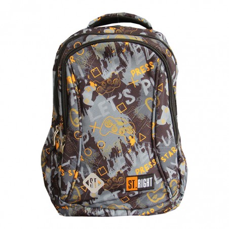 Ghiozdan pentru clasele I-IV, 3 compartimente, Majewski, Gama St. Right, Colectia Orange Pad, un ghiozdan modern si confortabil, de foarte buna calitate, finisat si decorat cu tehnologii avansate. Ghiozdanul este confectionat din materiale impermeabile, rezistente la uzura si inghet. Ghiozdanul este deosebit de incapator, cu o compartimentare excelenta, avand spatii pentru carti, caiete, accesorii si rechizite, asigurand astfel o foarte buna organizare. Prevazut cu un compartiment principal ce se inchide cu doua fermoare si doua compartimente frontale ce se inchid cu fermoar, ghiozdanul este deosebit de spatios si practic. Compartimentul principal al ghiozdanului este dotat cu un buzunar special pentru a pastra diverse articole de mici dimensiuni. Unul din compartimentele frontale ale ghiozdanului este dotat cu mai multe separatoare interioare (destinate articolelor precum chei, bani, memory-stick-uri, accesorii telefon, instrumente de scris sau alte obiecte importante de mici dimensiuni), precum si cu un breloc detasabil pentru cheie. Ghiozdanul este prevazut cu doua buzunare laterale cu elastic, ideale pentru a pastra recipientul cu apa. Ghiozdanul este dotat cu elemente reflectorizante pe partea din fata, pe bretele si pe laterale. Ghiozdanul este prevazut cu un maner buretat pentru a putea fi purtat si in mana. Spatele si bretelele sunt intarite si buretate cu un burete gros, oferindu-le fermitate si avand rolul de a proteja umerii si spatele. Spatele ghiozdanului este buretat ergonomic, dotat cu o zona de contact cu plasa, pentru o buna circulatie a aerului. Bretelele ghiozdanului sunt ajustabile, pentru ca acesta sa poata fi aranjat perfect pe spate. Fermoarele au zona de prindere cauciucata si profilata, pentru prindere usoara. Cheitele fermoarului compartimentului principal permit utilizarea unui lacat sau a unei criptari TSA. Baza ghiozdanului are zone de contact cauciucate pentru protejare la umezeala. Dimensiunile ghiozdanului sunt urmatoarele: 40x26x13 cm.
