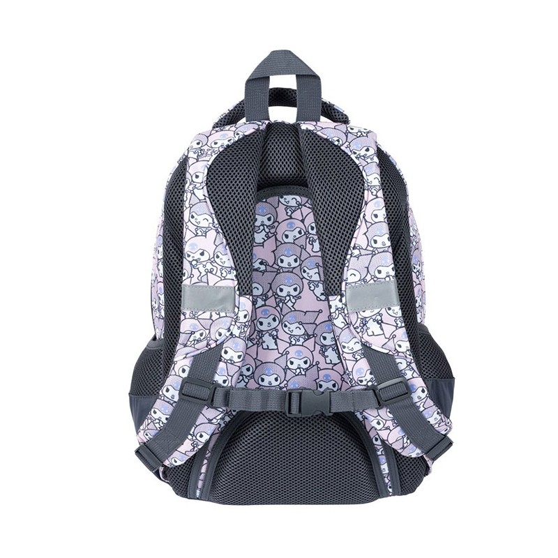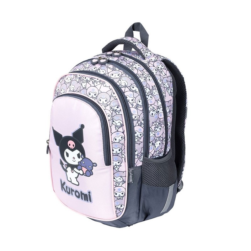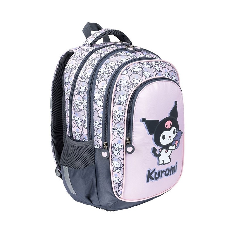 Ghiozdan pentru clasele I-IV, 4 compartimente, Majewski, Colectia Kuromi Pink, un ghiozdan modern si confortabil, de foarte buna calitate, finisat si decorat cu tehnologii avansate. Ghiozdanul este confectionat din materiale impermeabile, rezistente la uzura si inghet. Ghiozdanul este deosebit de incapator, cu o compartimentare excelenta, avand spatii pentru carti, caiete, accesorii si rechizite, asigurand astfel o foarte buna organizare. Prevazut cu un compartiment principal ce se inchide cu doua fermoare si trei compartimente frontale ce se inchid cu fermoar, ghiozdanul este deosebit de spatios si practic. Compartimentul principal este prevazut cu buzunar interior, pentru pastrarea si transportul tabletei. Unul din compartimentele frontale este dotat cu mai multe separatoare interi-oare (destinate articolelor precum chei, bani, memory-stick-uri, accesorii telefon, instrumente de scris sau alte obiecte importante de mici dimensiuni), precum si cu un breloc detasabil pentru cheie. Ghiozdanul este prevazut cu doua buzunare laterale cu plasa, ideale pentru a pastra recipientul cu apa. Ghiozdanul este dotat cu elemente reflectorizante pe partea din fata, pe laterale si pe bretele. Ghiozdanul este prevazut cu un maner buretat pentru a putea fi purtat si in mana. Spatele si bretelele sunt intarite si buretate cu un burete gros, oferindu-le fermitate si avand rolul de a proteja umerii si spatele. Spatele ghiozdanului este buretat ergonomic, dotat cu o zona de contact cu plasa, pentru o buna circulatie a aerului. Bretelele ghiozdanului sunt ajustabile, pentru ca acesta sa poata fi aranjat perfect pe spate. Fermoarele au zona de prindere cauciucata si profilata, pentru prindere usoara. Ba-za ghiozdanului are zone de contact cauciucate pentru protejare la umezeala. Dimensiunile ghi-ozdanului sunt urmatoarele: 40x28x18 cm.