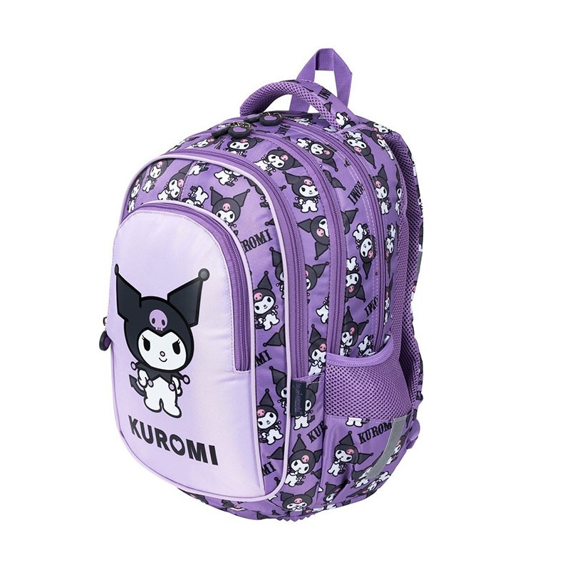 Ghiozdan pentru clasele I-IV, 4 compartimente, Majewski, Colectia Kuromi Violet, un ghiozdan modern si confortabil, de foarte buna calitate, finisat si decorat cu tehnologii avansate. Ghiozdanul este confectionat din materiale impermeabile, rezistente la uzura si inghet. Ghiozdanul este deosebit de incapator, cu o compartimentare excelenta, avand spatii pentru carti, caiete, accesorii si rechizite, asigurand astfel o foarte buna organizare. Prevazut cu un compartiment principal ce se inchide cu doua fermoare si trei compartimente frontale ce se inchid cu fermoar, ghiozdanul este deosebit de spatios si practic. Compartimentul principal este prevazut cu buzunar interior, pentru pastrarea si transportul tabletei. Unul din compartimentele frontale este dotat cu mai multe separatoare interi-oare (destinate articolelor precum chei, bani, memory-stick-uri, accesorii telefon, instrumente de scris sau alte obiecte importante de mici dimensiuni), precum si cu un breloc detasabil pentru cheie. Ghiozdanul este prevazut cu doua buzunare laterale cu plasa, ideale pentru a pastra recipientul cu apa. Ghiozdanul este dotat cu elemente reflectorizante pe partea din fata, pe laterale si pe bretele. Ghiozdanul este prevazut cu un maner buretat pentru a putea fi purtat si in mana. Spatele si bretelele sunt intarite si buretate cu un burete gros, oferindu-le fermitate si avand rolul de a proteja umerii si spatele. Spatele ghiozdanului este buretat ergonomic, dotat cu o zona de contact cu plasa, pentru o buna circulatie a aerului. Bretelele ghiozdanului sunt ajustabile, pentru ca acesta sa poata fi aranjat perfect pe spate. Fermoarele au zona de prindere cauciucata si profilata, pentru prindere usoara. Ba-za ghiozdanului are zone de contact cauciucate pentru protejare la umezeala. Dimensiunile ghi-ozdanului sunt urmatoarele: 40x28x18 cm.