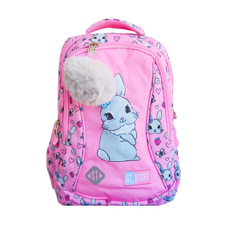 Ghiozdan pentru clasele I-IV, 3 compartimente, Majewski, Gama St. Right, Colectia Cute Rabbit, un ghiozdan modern si confortabil, de foarte buna calitate, finisat si decorat cu tehnologii avansate. Ghiozdanul este confectionat din materiale impermeabile, rezistente la uzura si inghet. Ghiozdanul este deosebit de incapator, cu o compartimentare excelenta, avand spatii pentru carti, caiete, acceso-rii si rechizite, asigurand astfel o foarte buna organizare. Prevazut cu un compartiment principal ce se inchide cu doua fermoare si doua compartimente frontale ce se inchid cu fermoar, ghiozdanul este deosebit de spatios si practic. Compartimentul principal al ghiozdanului este dotat cu un buzunar special pentru a pastra diverse articole de mici dimensiuni. Unul din compartimentele fron-tale ale ghiozdanului este dotat cu mai multe separatoare interioare (destinate articolelor precum chei, bani, memory-stick-uri, accesorii telefon, instrumente de scris sau alte obiecte importante de mici dimensiuni), precum si cu un breloc detasabil pentru cheie. Ghiozdanul este prevazut cu doua buzunare laterale cu elastic, ideale pentru a pastra recipientul cu apa. Ghiozdanul este dotat cu ele-mente reflectorizante pe partea din fata, pe laterale si pe bretele. Ghiozdanul este prevazut cu un maner buretat pentru a putea fi purtat si in mana. Spatele si bretelele sunt intarite si buretate cu un burete gros, oferindu-le fermitate si avand rolul de a proteja umerii si spatele. Spatele ghiozdanului este buretat ergonomic, dotat cu o zona de contact cu plasa, pentru o buna circulatie a aerului. Bretelele ghiozdanului sunt ajustabile, pentru ca acesta sa poata fi aranjat perfect pe spate. Fermoarele au zona de prindere cauciucata si profilata, pentru prindere usoara. Cheitele fermoarului compartimentului principal permit utilizarea unui lacat sau a unei criptari TSA. Baza ghiozdanului are zone de contact cauciucate pentru protejare la umezeala. Dimensiunile ghiozdanului sunt urmatoarele: 40x26x15 cm.