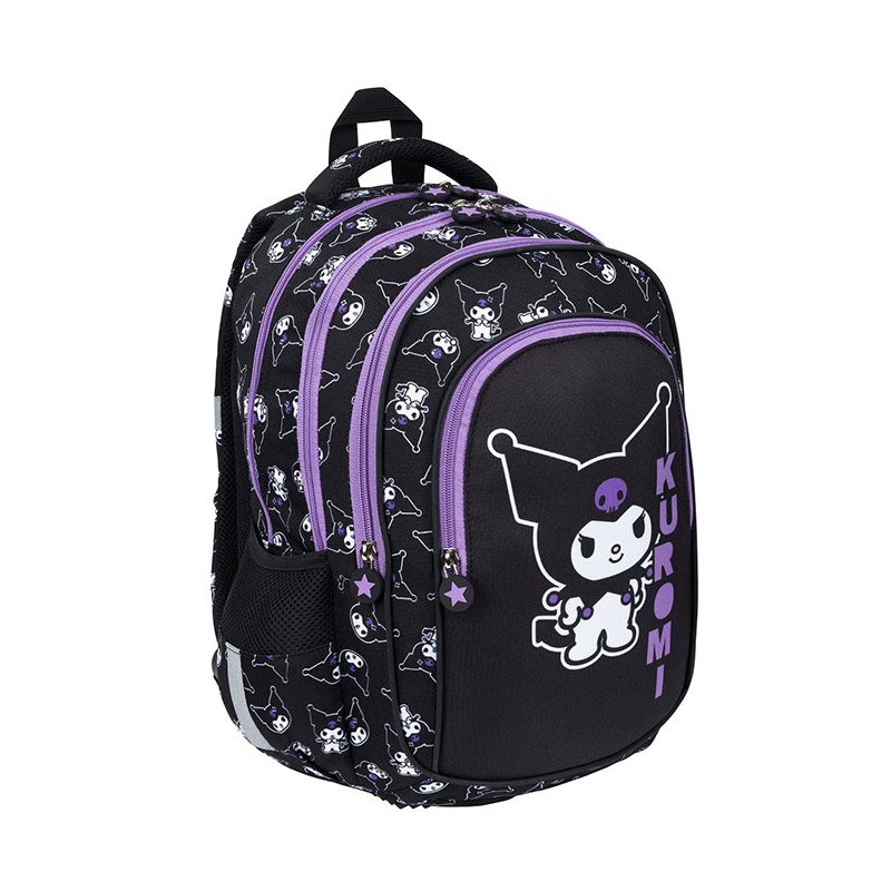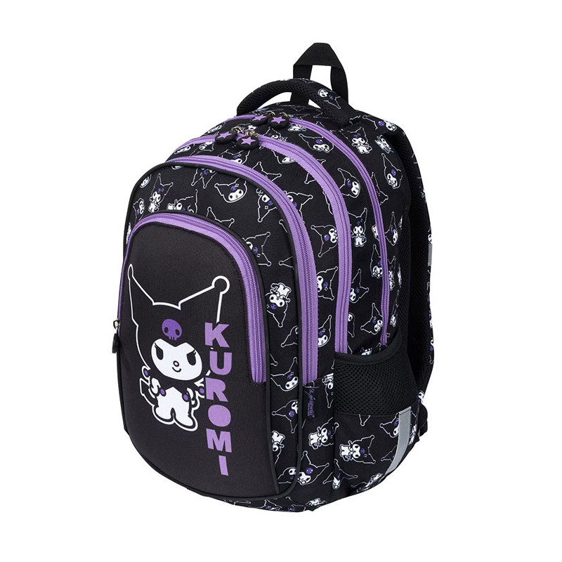 Ghiozdan pentru clasele I-IV, 4 compartimente, Majewski, Colectia Kuromi Black, un ghiozdan modern si confortabil, de foarte buna calitate, finisat si decorat cu tehnologii avansate. Ghiozdanul este confectionat din materiale impermeabile, rezistente la uzura si inghet. Ghiozdanul este deosebit de incapator, cu o compartimentare excelenta, avand spatii pentru carti, caiete, accesorii si rechizite, asigurand astfel o foarte buna organizare. Prevazut cu un compartiment principal ce se inchide cu doua fermoare si trei compartimente frontale ce se inchid cu fermoar, ghiozdanul este deosebit de spatios si practic. Compartimentul principal este prevazut cu buzunar interior, pentru pastrarea si transportul tabletei. Unul din compartimentele frontale este dotat cu mai multe separatoare interi-oare (destinate articolelor precum chei, bani, memory-stick-uri, accesorii telefon, instrumente de scris sau alte obiecte importante de mici dimensiuni), precum si cu un breloc detasabil pentru cheie. Ghiozdanul este prevazut cu doua buzunare laterale cu plasa, ideale pentru a pastra recipientul cu apa. Ghiozdanul este dotat cu elemente reflectorizante pe partea din fata, pe laterale si pe bretele. Ghiozdanul este prevazut cu un maner buretat pentru a putea fi purtat si in mana. Spatele si bretelele sunt intarite si buretate cu un burete gros, oferindu-le fermitate si avand rolul de a proteja umerii si spatele. Spatele ghiozdanului este buretat ergonomic, dotat cu o zona de contact cu plasa, pentru o buna circulatie a aerului. Bretelele ghiozdanului sunt ajustabile, pentru ca acesta sa poata fi aranjat perfect pe spate. Fermoarele au zona de prindere cauciucata si profilata, pentru prindere usoara. Ba-za ghiozdanului are zone de contact cauciucate pentru protejare la umezeala. Dimensiunile ghi-ozdanului sunt urmatoarele: 40x28x18 cm.