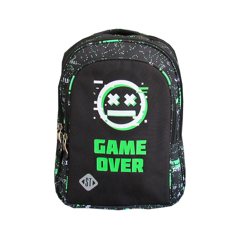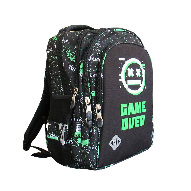 Ghiozdan pentru clasele I-IV, 4 compartimente, Majewski, Gama St. Right, Colectia VR Gamer, un ghiozdan modern si confortabil, de foarte buna calitate, finisat si decorat cu tehnologii avansate. Ghiozdanul este confectionat din materiale impermeabile, rezistente la uzura si inghet. Ghiozdanul este deosebit de incapator, cu o compartimentare excelenta, avand spatii pentru carti, caiete, accesorii si rechizite, asigurand astfel o foarte buna organizare. Prevazut cu un compartiment principal ce se inchide cu doua fermoare si trei compartimente frontale ce se inchid cu fermoar, ghiozdanul este deosebit de spatios si practic. Doua din cele trei compartimente frontale sunt prevazute cu cate 2 fermoare. Compartimentul principal al ghiozdanului este dotat cu un buzunar special captusit cu fleece pentru a pastra telefonul sau castile, un spatiu pentru personalizare (destinat pentru a nota numele, numarul de telefon si adresa de e-mail) si o iesire pentru casti. Unul din compartimentele frontale este dotat cu mai multe separatoare interioare (destinate articolelor precum chei, bani, memory-stick-uri, accesorii telefon, instrumente de scris sau alte obiecte importante de mici dimensiuni), precum si cu un breloc detasabil pentru cheie. Ghiozdanul este prevazut cu doua buzunare laterale cu plasa, ideale pentru a pastra recipientul cu apa. Ghiozdanul este dotat cu elemente reflectorizante pe partea din fata, pe laterale si pe bretele. Ghiozdanul este prevazut cu un maner buretat pentru a putea fi purtat si in mana. Spatele si bretelele sunt intarite si buretate cu un burete gros, oferindu-le fermitate si avand rolul de a proteja umerii si spatele. Spatele ghiozdanului este buretat ergonomic, dotat cu o zona de contact cu plasa, pentru o buna circulatie a aerului. Bretelele ghiozdanului sunt ajustabile, pentru ca acesta sa poata fi aranjat perfect pe spate. Fermoarele au zona de prindere cauciucata si profilata, pentru prindere usoara. Cheitele fermoarului compartimentului principal permit utilizarea unui lacat sau a unei criptari TSA. Baza ghiozdanului are zone de contact cauciucate pentru protejare la umezeala. Dimensiunile ghiozdanului sunt urmatoarele: 40x28x18 cm.