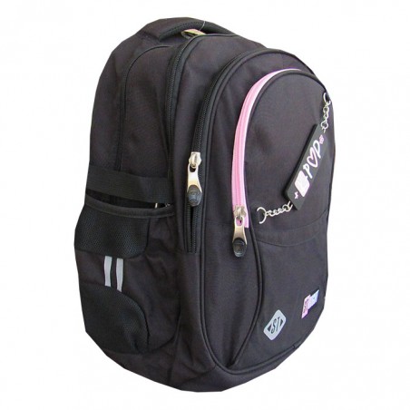 Ghiozdan pentru clasele V-VIII, 4 compartimente, Majewski, Gama St. Right, Colectia Pink K-Pop, un ghiozdan modern si confortabil, de foarte buna calitate, finisat si decorat cu tehnologii avansate. Ghiozdanul este confectionat din materiale impermeabile, rezistente la uzura si inghet. Ghiozdanul este deosebit de incapator, cu o compartimentare excelenta, avand spatii pentru carti, caiete, accesorii si rechizite, asigurand astfel o foarte buna organizare. Prevazut cu un compartiment principal ce se inchide cu doua fermoare si trei compartimente frontale ce se inchid cu fermoar, ghiozdanul este deosebit de spatios si practic. Compartimentul principal al ghiozdanului este dotat cu un buzunar special captusit cu fleece pentru a pastra telefonul sau castile, un spatiu pentru personalizare (destinat pentru a nota numele, numarul de telefon si adresa de e-mail) si o iesire pentru casti. Unul din compartimentele frontale este dotat cu un buzunar pentru accesoriile telefonului, laptopului sau tabletei, precum alimentatoare, cabluri, mouse sau altele. Celalalt compartiment frontal este dotat cu mai multe separatoare interioare (destinate articolelor precum chei, bani, memory-stick-uri, accesorii telefon, instrumente de scris sau alte obiecte importante de mici dimensiuni), precum si cu un breloc detasabil pentru cheie. Ghiozdanul este prevazut cu doua buzunare laterale cu plasa, ideale pentru a pastra recipientul cu apa. Ghiozdanul este dotat cu elemente reflectorizante pe partea din fata, pe laterale si pe bretele. Ghiozdanul este prevazut cu un maner buretat pentru a putea fi purtat si in mana. Spatele si bretelele sunt intarite si buretate cu un burete gros, oferindu-le fermitate si avand rolul de a proteja umerii si spatele. Spatele ghiozdanului este buretat ergonomic, dotat cu o zona de contact cu plasa, pentru o buna circulatie a aerului. Bretelele ghiozdanului sunt ajustabile, pentru ca acesta sa poata fi aranjat perfect pe spate. Ghiozdanul este dotat cu doua curele laterale pentru reglarea adancimii si mentinerea aspectului ghiozdanului. Fermoarele au zona de prindere cauciucata si profilata, pentru prindere usoara. Cheitele fermoarului compartimentului principal permit utilizarea unui lacat sau a unei criptari TSA. Baza ghiozdanului are zone de contact cauciucate pentru protejare la umezeala. Dimensiunile ghiozdanului sunt urmatoarele: 43x32x21 cm.