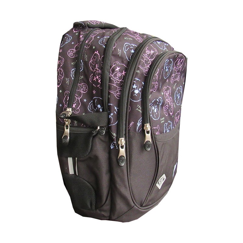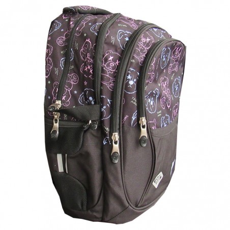 Ghiozdan pentru clasele V-VIII, 4 compartimente, Majewski, Gama St. Right, Colectia Trouble Maker Bear, un ghiozdan modern si confortabil, de foarte buna calitate, finisat si decorat cu tehnologii avansate. Ghiozdanul este confectionat din materiale impermeabile, rezistente la uzura si inghet. Ghiozdanul este deosebit de incapator, cu o compartimentare excelenta, avand spatii pentru carti, caiete, accesorii si rechizite, asigurand astfel o foarte buna organizare. Prevazut cu un compartiment principal ce se inchide cu doua fermoare si trei compartimente frontale ce se inchid cu fermoar, ghiozdanul este deosebit de spatios si practic. Compartimentul principal al ghiozdanului este dotat cu un buzunar special captusit cu fleece pentru a pastra telefonul sau castile, un spatiu pentru personalizare (destinat pentru a nota numele, numarul de telefon si adresa de e-mail) si o iesire pentru casti. Unul din compartimentele frontale este dotat cu un buzunar pentru accesoriile telefonului, laptopului sau tabletei, precum alimentatoare, cabluri, mouse sau altele. Celalalt compartiment frontal este dotat cu mai multe separatoare interioare (destinate articolelor precum chei, bani, memory-stick-uri, accesorii telefon, instrumente de scris sau alte obiecte importante de mici dimensiuni), precum si cu un breloc detasabil pentru cheie. Ghiozdanul este prevazut cu doua buzunare laterale cu plasa, ideale pentru a pastra recipientul cu apa. Ghiozdanul este dotat cu elemente reflectorizante pe partea din fata, pe laterale si pe bretele. Ghiozdanul este prevazut cu un maner buretat pentru a putea fi purtat si in mana. Spatele si bretelele sunt intarite si buretate cu un burete gros, oferindu-le fermitate si avand rolul de a proteja umerii si spatele. Spatele ghiozdanului este buretat ergonomic, dotat cu o zona de contact cu plasa, pentru o buna circulatie a aerului. Bretelele ghiozdanului sunt ajustabile, pentru ca acesta sa poata fi aranjat perfect pe spate. Ghiozdanul este dotat cu doua curele laterale pentru reglarea adancimii si mentinerea aspectului ghiozdanului. Fermoarele au zona de prindere cauciucata si profilata, pentru prindere usoara. Cheitele fermoarului compartimentului principal permit utilizarea unui lacat sau a unei criptari TSA. Baza ghiozdanului are zone de contact cauciucate pentru protejare la umezeala. Dimensiunile ghiozdanului sunt urmatoarele: 43x32x21 cm.
