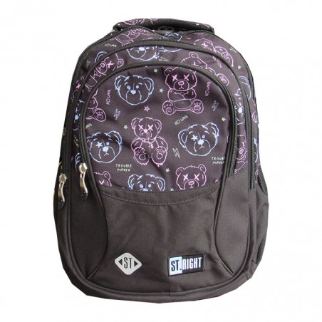 Ghiozdan clasele V-VIII, 4 compartimente, Majewski, Gama St. Right, Colectia Trouble Maker Bear 2025, BP-01