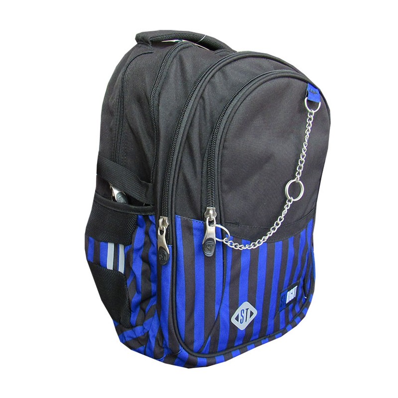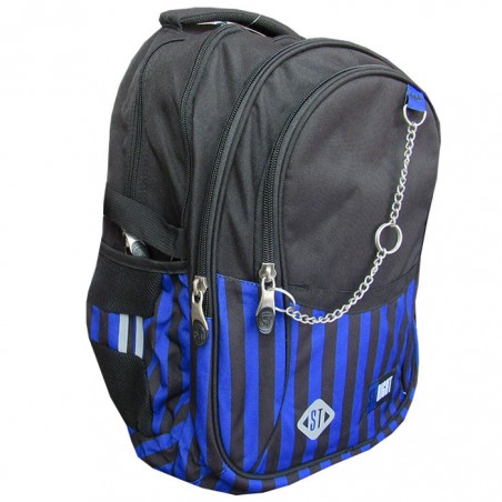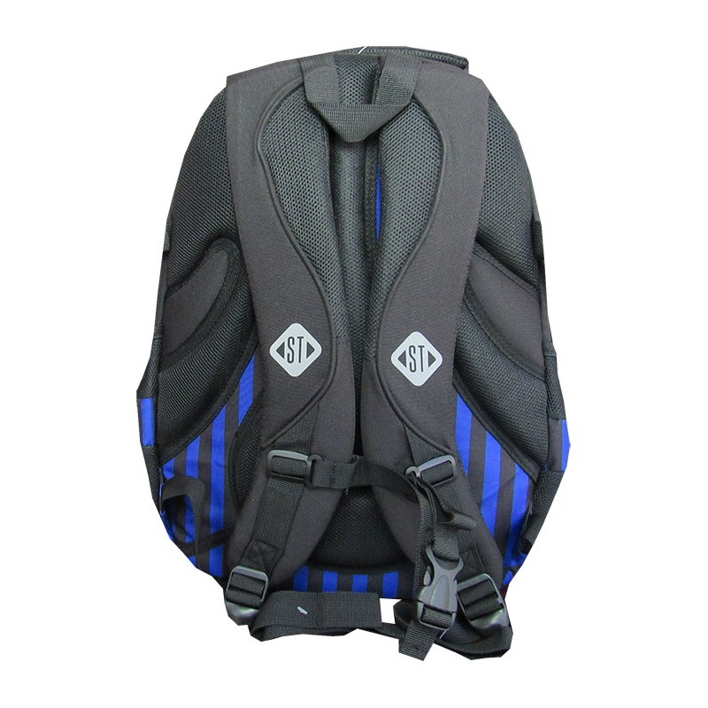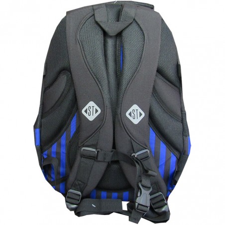 Ghiozdan pentru clasele V-VIII, 4 compartimente, Majewski, Gama St. Right, Colectia Black si Blue, un ghiozdan modern si confortabil, de foarte buna calitate, finisat si decorat cu tehnologii avansate. Ghiozdanul este confectionat din materiale impermeabile, rezistente la uzura si inghet. Ghiozdanul este deosebit de incapator, cu o compartimentare excelenta, avand spatii pentru carti, caiete, accesorii si rechizite, asigurand astfel o foarte buna organizare. Prevazut cu un compartiment principal ce se inchide cu doua fermoare si trei compartimente frontale ce se inchid cu fermoar, ghiozdanul este deosebit de spatios si practic. Compartimentul principal al ghiozdanului este dotat cu un buzunar special captusit cu fleece pentru a pastra telefonul sau castile, un spatiu pentru personalizare (destinat pentru a nota numele, numarul de telefon si adresa de e-mail) si o iesire pentru casti. Unul din compartimentele frontale este dotat cu un buzunar pentru accesoriile telefonului, laptopului sau tabletei, precum alimentatoare, cabluri, mouse sau altele. Celalalt compartiment frontal este dotat cu mai multe separatoare interioare (destinate articolelor precum chei, bani, memory-stick-uri, accesorii telefon, instrumente de scris sau alte obiecte importante de mici dimensiuni), precum si cu un breloc detasabil pentru cheie. Ghiozdanul este prevazut cu doua buzunare laterale cu plasa, ideale pentru a pastra recipientul cu apa. Ghiozdanul este dotat cu elemente reflectorizante pe partea din fata, pe laterale si pe bretele. Ghiozdanul este prevazut cu un maner buretat pentru a putea fi purtat si in mana. Spatele si bretelele sunt intarite si buretate cu un burete gros, oferindu-le fermitate si avand rolul de a proteja umerii si spatele. Spatele ghiozdanului este buretat ergonomic, dotat cu o zona de contact cu plasa, pentru o buna circulatie a aerului. Bretelele ghiozdanului sunt ajustabile, pentru ca acesta sa poata fi aranjat perfect pe spate. Ghiozdanul este dotat cu doua curele laterale pentru reglarea adancimii si mentinerea aspectului ghiozdanului. Fermoarele au zona de prindere cauciucata si profilata, pentru prindere usoara. Cheitele fermoarului compartimentului principal permit utilizarea unui lacat sau a unei criptari TSA. Baza ghiozdanului are zone de contact cauciucate pentru protejare la umezeala. Dimensiunile ghiozdanului sunt urmatoarele: 43x32x21 cm.