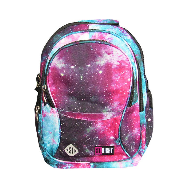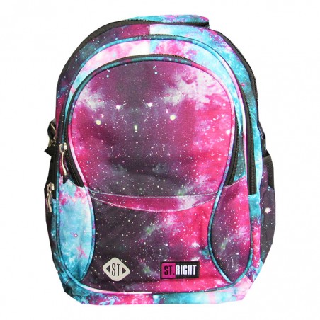 Ghiozdan pentru clasele V-VIII, 4 compartimente, Majewski, Gama St. Right, Colectia Nebula, un ghiozdan modern si confortabil, de foarte buna calitate, finisat si decorat cu tehnologii avansate. Ghiozdanul este confectionat din materiale impermeabile, rezistente la uzura si inghet. Ghiozdanul este deosebit de incapator, cu o compartimentare excelenta, avand spatii pentru carti, caiete, accesorii si rechizite, asigurand astfel o foarte buna organizare. Prevazut cu un compartiment principal ce se inchide cu doua fermoare si trei compartimente frontale ce se inchid cu fermoar, ghiozdanul este deosebit de spatios si practic. Compartimentul principal al ghiozdanului este dotat cu un buzunar special captusit cu fleece pentru a pastra telefonul sau castile, un spatiu pentru personalizare (destinat pentru a nota numele, numarul de telefon si adresa de e-mail) si o iesire pentru casti. Unul din compartimentele frontale este dotat cu un buzunar pentru accesoriile telefonului, laptopului sau tabletei, precum alimentatoare, cabluri, mouse sau altele. Celalalt compartiment frontal este dotat cu mai multe separatoare interioare (destinate articolelor precum chei, bani, memory-stick-uri, accesorii telefon, instrumente de scris sau alte obiecte importante de mici dimensiuni), precum si cu un breloc detasabil pentru cheie. Ghiozdanul este prevazut cu doua buzunare laterale cu plasa, ideale pentru a pastra recipientul cu apa. Ghiozdanul este dotat cu elemente reflectorizante pe partea din fata, pe laterale si pe bretele. Ghiozdanul este prevazut cu un maner buretat pentru a putea fi purtat si in mana. Spatele si bretelele sunt intarite si buretate cu un burete gros, oferindu-le fermitate si avand rolul de a proteja umerii si spatele. Spatele ghiozdanului este buretat ergonomic, dotat cu o zona de contact cu plasa, pentru o buna circulatie a aerului. Bretelele ghiozdanului sunt ajustabile, pentru ca acesta sa poata fi aranjat perfect pe spate. Ghiozdanul este dotat cu doua curele laterale pentru reglarea adancimii si mentinerea aspectului ghiozdanului. Fermoarele au zona de prindere cauciucata si profilata, pentru prindere usoara. Cheitele fermoarului compartimentului principal permit utilizarea unui lacat sau a unei criptari TSA. Baza ghiozdanului are zone de contact cauciucate pentru protejare la umezeala. Dimensiunile ghiozdanului sunt urmatoarele: 43x32x21 cm.