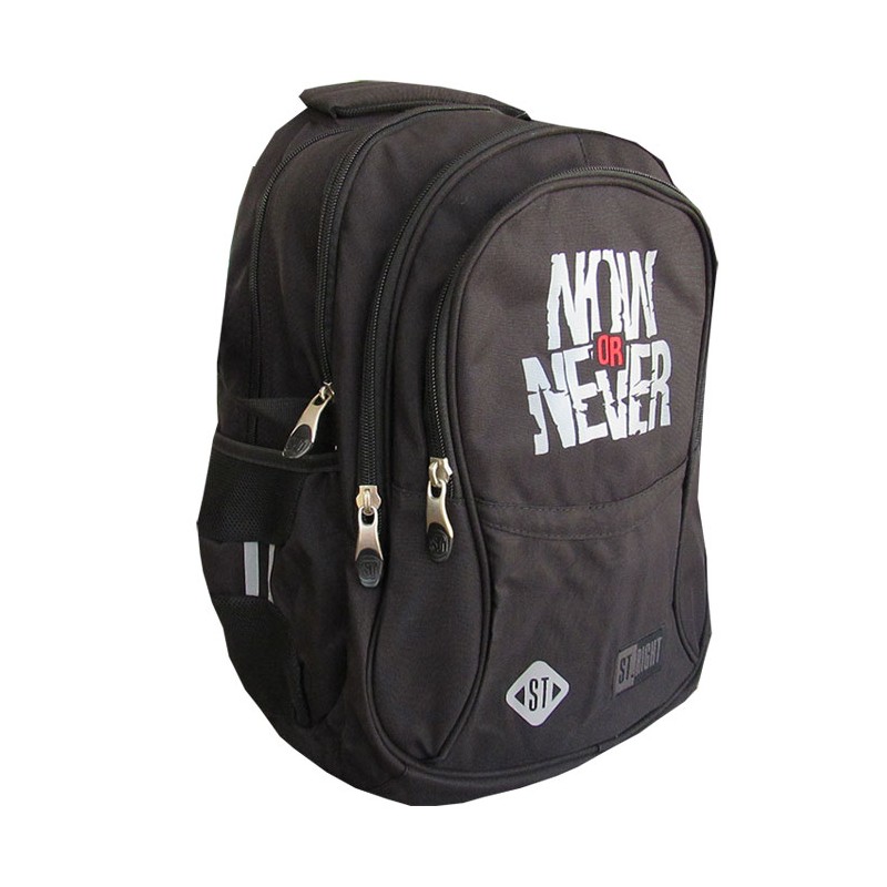 Ghiozdan pentru clasele V-VIII, 4 compartimente, Majewski, Gama St. Right, Colectia Now or Never, un ghiozdan modern si confortabil, de foarte buna calitate, finisat si decorat cu tehnologii avansate. Ghiozdanul este confectionat din materiale impermeabile, rezistente la uzura si inghet. Ghiozdanul este deosebit de incapator, cu o compartimentare excelenta, avand spatii pentru carti, caiete, accesorii si rechizite, asigurand astfel o foarte buna organizare. Prevazut cu un compartiment principal ce se inchide cu doua fermoare si trei compartimente frontale ce se inchid cu fermoar, ghiozdanul este deosebit de spatios si practic. Compartimentul principal al ghiozdanului este dotat cu un buzunar special captusit cu fleece pentru a pastra telefonul sau castile, un spatiu pentru personalizare (destinat pentru a nota numele, numarul de telefon si adresa de e-mail) si o iesire pentru casti. Unul din compartimentele frontale este dotat cu un buzunar pentru accesoriile telefonului, laptopului sau tabletei, precum alimentatoare, cabluri, mouse sau altele. Celalalt compartiment frontal este dotat cu mai multe separatoare interioare (destinate articolelor precum chei, bani, memory-stick-uri, accesorii telefon, instrumente de scris sau alte obiecte importante de mici dimensiuni), precum si cu un breloc detasabil pentru cheie. Ghiozdanul este prevazut cu doua buzunare laterale cu plasa, ideale pentru a pastra recipientul cu apa. Ghiozdanul este dotat cu elemente reflectorizante pe partea din fata, pe laterale si pe bretele. Ghiozdanul este prevazut cu un maner buretat pentru a putea fi purtat si in mana. Spatele si bretelele sunt intarite si buretate cu un burete gros, oferindu-le fermitate si avand rolul de a proteja umerii si spatele. Spatele ghiozdanului este buretat ergonomic, dotat cu o zona de contact cu plasa, pentru o buna circulatie a aerului. Bretelele ghiozdanului sunt ajustabile, pentru ca acesta sa poata fi aranjat perfect pe spate. Ghiozdanul este dotat cu doua curele laterale pentru reglarea adancimii si mentinerea aspectului ghiozdanului. Fermoarele au zona de prindere cauciucata si profilata, pentru prindere usoara. Cheitele fermoarului compartimentului principal permit utilizarea unui lacat sau a unei criptari TSA. Baza ghiozdanului are zone de contact cauciucate pentru protejare la umezeala. Dimensiunile ghiozdanului sunt urmatoarele: 43x32x21 cm.