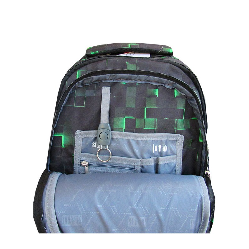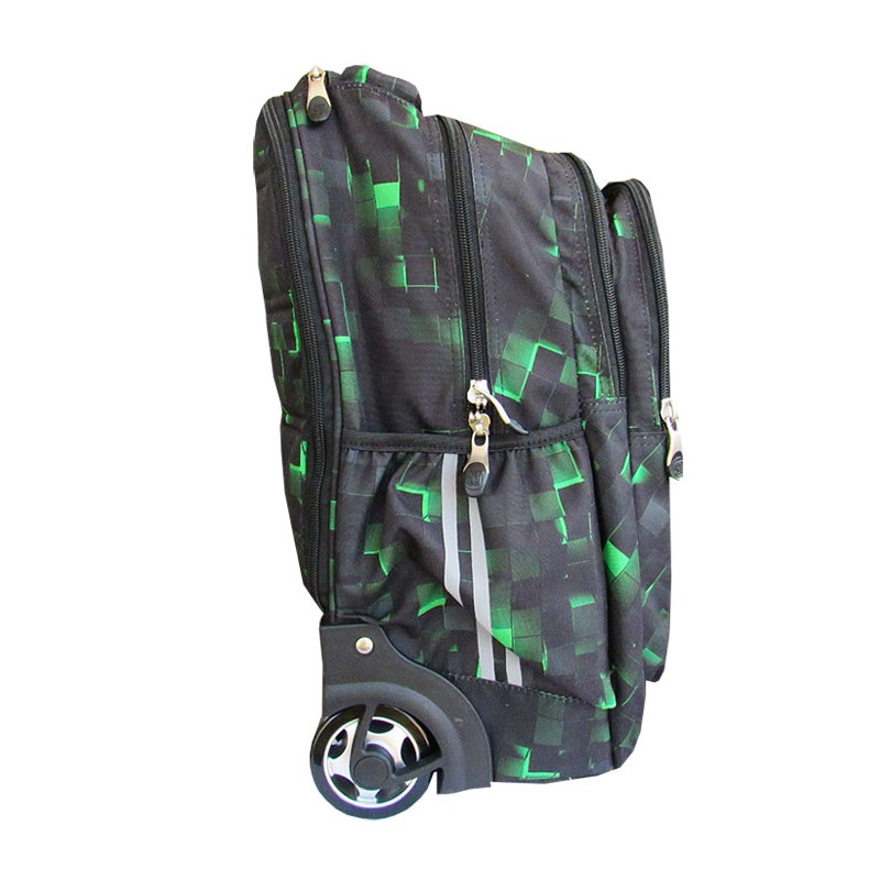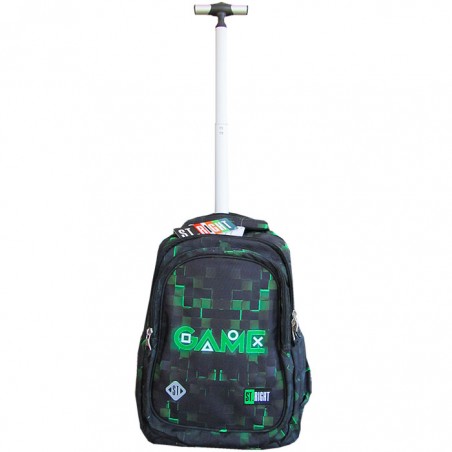 Ghiozdan cu troler Majewski Gama St. Right, Colectia Green Game, un ghiozdan modern si con-fortabil, de foarte buna calitate, finisat si decorat cu tehnologii avansate. Ghiozdanul este confec-tionat din materiale impermeabile, rezistente la uzura si inghet. Ghiozdanul poate fi folosit atat ca si troler, cat si ca un ghiozdan clasic. Ghiozdanul este deosebit de incapator, cu o compartimentare excelenta, avand spatii pentru carti, caiete, accesorii si rechizite, asigurand astfel o foarte buna or-ganizare. Prevazut cu un compartiment principal ce se inchide cu doua fermoare si doua comparti-mente frontale ce se inchid cu fermoar, ghiozdanul este deosebit de spatios si practic. Compartimen-tul principal al ghiozdanului este dotat cu doua buzunare speciale pentru pastrarea laptopului si a tabletei. Unul din compartimentele frontale ale ghiozdanului este dotat cu mai multe separatoare interioare (destinate articolelor precum chei, bani, memory-stick-uri, accesorii telefon, instrumente de scris sau alte obiecte importante de mici dimensiuni), precum si cu un breloc detasabil pentru cheie. Celalalt compartiment frontal este dotat cu un buzunar pentru accesoriile telefonului, lap-topului sau tabletei, precum alimentatoare, cabluri, mouse sau altele. Ghiozdanul este prevazut cu doua buzunare laterale cu elastic, ideale pentru a pastra recipientul cu apa. Ghiozdanul este prevazut cu un troler nedetasabil, care poate fi ascuns intr-un compartiment inchis cu fermoar, atunci cand ghiozdanul este purtat pe spate. Manerul telescopic din aluminiu este ergonomic si ajustabil in 2 pozitii (85 si 105 cm) adaptate la inaltimea copilului in crestere. Rotile ghiozdanului sunt robuste, silentioase, si se rotesc usor. Modificarea de la troler la ghiozdan si invers se face usor. Cand este utilizat ca troler, bretelele sunt ascunse de compartimentul dorsal. Compartimentul dorsal ofera un spatiu suplimentar de depozitare, atunci cand ghiozdanul se foloseste pe post de troler. Cand este utilizat ca si ghiozdan, panoul buzunarului asigura acoperirea rotilor. Ghiozdanul este prevazut in partea de jos cu un panou din plastic, pentru protejarea acestuia atunci cand este folosit pe post de troler, in timpul mersului sau la coborarea/urcarea scarilor. Tot in partea de jos a ghiozdanului se afla 2 picioruse, cu rolul de a oferi protectie si stabilitate ghiozdanului. Ghiozdanul este prevazut cu un maner buretat pentru a putea fi purtat si in mana. Spatele si bretelele sunt intarite si buretate cu un burete gros, oferindu-le fermitate si avand rolul de a proteja umerii si spatele. Bretelele ghi-ozdanului sunt ajustabile, pentru ca acesta sa poata fi aranjat perfect pe spate. Zona de contact cu spatele este captusita cu spuma. Fermoarele au zona de prindere cauciucata si profilata, pentru prin-dere usoara. Cheitele fermoarului compartimentului principal permit utilizarea unui lacat sau a unei criptari TSA. Dimensiunile ghiozdanului sunt urmatoarele: 44x32x20 cm (fara maner).