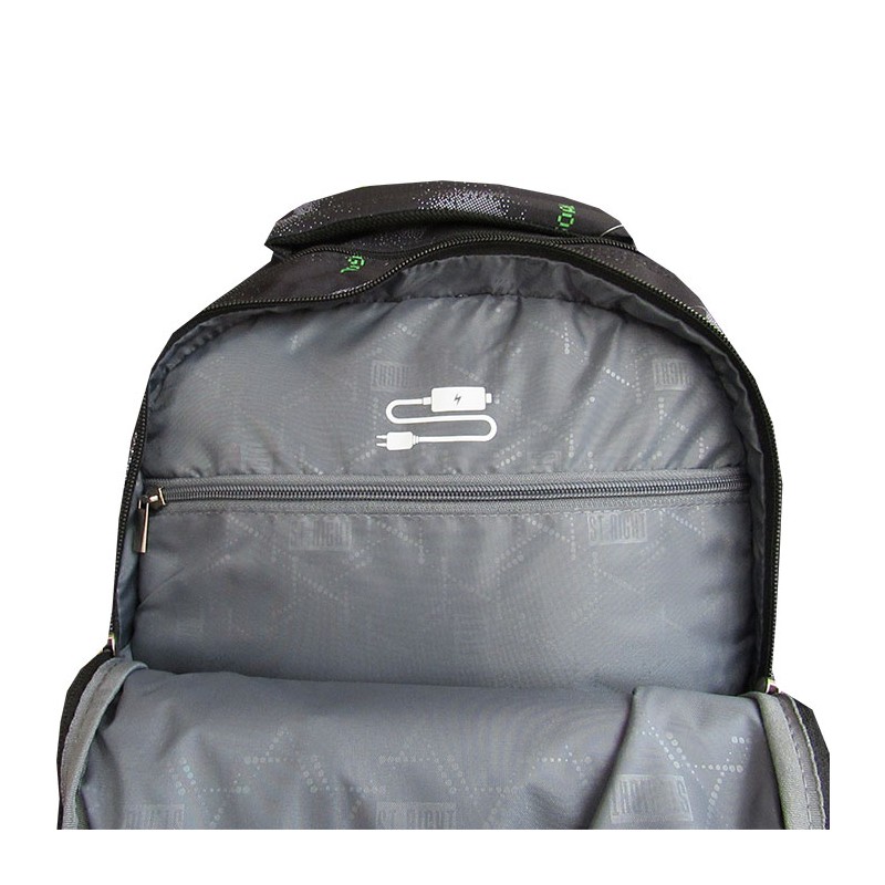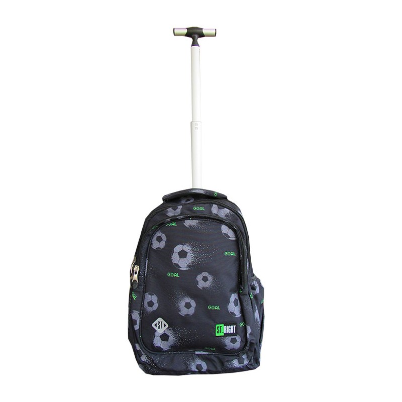 Ghiozdan cu troler Majewski Gama St. Right, Colectia Pixel Balls, un ghiozdan modern si confortabil, de foarte buna calitate, finisat si decorat cu tehnologii avansate. Ghiozdanul este confectionat din materiale impermeabile, rezistente la uzura si inghet. Ghiozdanul poate fi folosit atat ca si troler, cat si ca un ghiozdan clasic. Ghiozdanul este deosebit de incapator, cu o compartimentare excelenta, avand spatii pentru carti, caiete, accesorii si rechizite, asigurand astfel o foarte buna organizare. Prevazut cu un compartiment principal ce se inchide cu doua fermoare si doua compartimente frontale ce se inchid cu fermoar, ghiozdanul este deosebit de spatios si practic. Compartimentul principal al ghiozdanului este dotat cu doua buzunare speciale pentru pastrarea laptopului si a tabletei. Unul din compartimentele frontale ale ghiozdanului este dotat cu mai multe separatoare interioare (destinate articolelor precum chei, bani, memory-stick-uri, accesorii telefon, instrumente de scris sau alte obiecte importante de mici dimensiuni), precum si cu un breloc detasabil pentru cheie. Celalalt compartiment frontal este dotat cu un buzunar pentru accesoriile telefonului, laptopului sau tabletei, precum alimentatoare, cabluri, mouse sau altele. Ghiozdanul este prevazut cu doua buzunare laterale cu elastic, ideale pentru a pastra recipientul cu apa. Ghiozdanul este prevazut cu un troler nedetasabil, care poate fi ascuns intr-un compartiment inchis cu fermoar, atunci cand ghiozdanul este purtat pe spate. Manerul telescopic din aluminiu este ergonomic si ajustabil in 2 pozitii (85 si 105 cm) adaptate la inaltimea copilului in crestere. Rotile ghiozdanului sunt robuste, silentioase, si se rotesc usor. Modificarea de la troler la ghiozdan si invers se face usor. Cand este utilizat ca troler, bretelele sunt ascunse de compartimentul dorsal. Compartimentul dorsal ofera un spatiu suplimentar de depozitare, atunci cand ghiozdanul se foloseste pe post de troler. Cand este utilizat ca si ghiozdan, panoul buzunarului asigura acoperirea rotilor. Ghiozdanul este prevazut in partea de jos cu un panou din plastic, pentru protejarea acestuia atunci cand este folosit pe post de troler, in timpul mersului sau la coborarea/urcarea scarilor. Tot in partea de jos a ghiozdanului se afla 2 picioruse, cu rolul de a oferi protectie si stabilitate ghiozdanului. Ghiozdanul este prevazut cu un maner buretat pentru a putea fi purtat si in mana. Spatele si bretelele sunt intarite si buretate cu un burete gros, oferindu-le fermitate si avand rolul de a proteja umerii si spatele. Bretelele ghiozdanului sunt ajustabile, pentru ca acesta sa poata fi aranjat perfect pe spate. Zona de contact cu spatele este captusita cu spuma. Fermoarele au zona de prindere cauciucata si profilata, pentru prindere usoara. Cheitele fermoarului compartimentului principal permit utilizarea unui lacat sau a unei criptari TSA. Dimensiunile ghiozdanului sunt urmatoarele: 44x32x20 cm (fara maner).