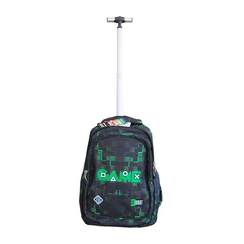 Ghiozdan cu troler Majewski Gama St. Right, Colectia Green Game, un ghiozdan modern si con-fortabil, de foarte buna calitate, finisat si decorat cu tehnologii avansate. Ghiozdanul este confec-tionat din materiale impermeabile, rezistente la uzura si inghet. Ghiozdanul poate fi folosit atat ca si troler, cat si ca un ghiozdan clasic. Ghiozdanul este deosebit de incapator, cu o compartimentare excelenta, avand spatii pentru carti, caiete, accesorii si rechizite, asigurand astfel o foarte buna or-ganizare. Prevazut cu un compartiment principal ce se inchide cu doua fermoare si doua comparti-mente frontale ce se inchid cu fermoar, ghiozdanul este deosebit de spatios si practic. Compartimen-tul principal al ghiozdanului este dotat cu doua buzunare speciale pentru pastrarea laptopului si a tabletei. Unul din compartimentele frontale ale ghiozdanului este dotat cu mai multe separatoare interioare (destinate articolelor precum chei, bani, memory-stick-uri, accesorii telefon, instrumente de scris sau alte obiecte importante de mici dimensiuni), precum si cu un breloc detasabil pentru cheie. Celalalt compartiment frontal este dotat cu un buzunar pentru accesoriile telefonului, lap-topului sau tabletei, precum alimentatoare, cabluri, mouse sau altele. Ghiozdanul este prevazut cu doua buzunare laterale cu elastic, ideale pentru a pastra recipientul cu apa. Ghiozdanul este prevazut cu un troler nedetasabil, care poate fi ascuns intr-un compartiment inchis cu fermoar, atunci cand ghiozdanul este purtat pe spate. Manerul telescopic din aluminiu este ergonomic si ajustabil in 2 pozitii (85 si 105 cm) adaptate la inaltimea copilului in crestere. Rotile ghiozdanului sunt robuste, silentioase, si se rotesc usor. Modificarea de la troler la ghiozdan si invers se face usor. Cand este utilizat ca troler, bretelele sunt ascunse de compartimentul dorsal. Compartimentul dorsal ofera un spatiu suplimentar de depozitare, atunci cand ghiozdanul se foloseste pe post de troler. Cand este utilizat ca si ghiozdan, panoul buzunarului asigura acoperirea rotilor. Ghiozdanul este prevazut in partea de jos cu un panou din plastic, pentru protejarea acestuia atunci cand este folosit pe post de troler, in timpul mersului sau la coborarea/urcarea scarilor. Tot in partea de jos a ghiozdanului se afla 2 picioruse, cu rolul de a oferi protectie si stabilitate ghiozdanului. Ghiozdanul este prevazut cu un maner buretat pentru a putea fi purtat si in mana. Spatele si bretelele sunt intarite si buretate cu un burete gros, oferindu-le fermitate si avand rolul de a proteja umerii si spatele. Bretelele ghi-ozdanului sunt ajustabile, pentru ca acesta sa poata fi aranjat perfect pe spate. Zona de contact cu spatele este captusita cu spuma. Fermoarele au zona de prindere cauciucata si profilata, pentru prin-dere usoara. Cheitele fermoarului compartimentului principal permit utilizarea unui lacat sau a unei criptari TSA. Dimensiunile ghiozdanului sunt urmatoarele: 44x32x20 cm (fara maner).