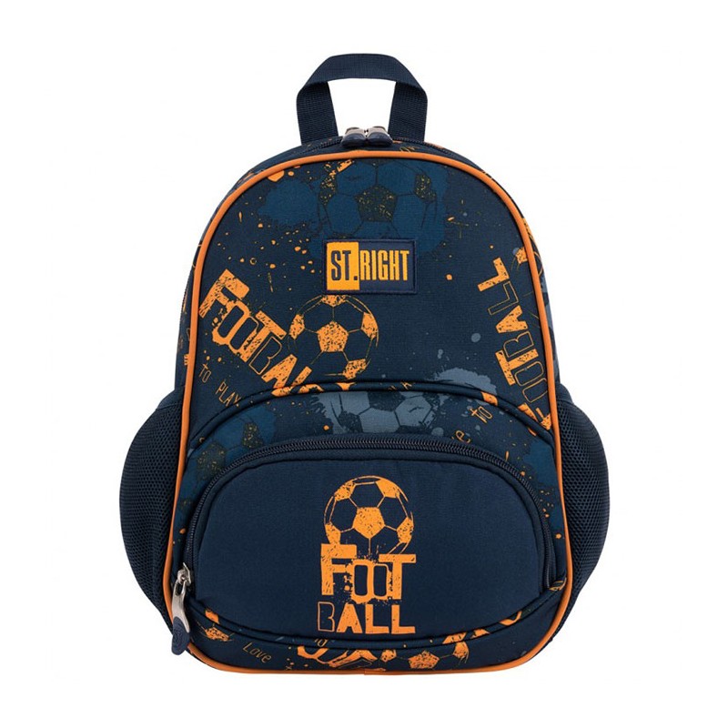 Ghiozdan pentru gradinita, 1 compartiment, 1 buzunar, Majewski, Gama St. Right, Colectia Soccer Balls, un ghiozdan modern si confortabil, de foarte buna calitate. Ghiozdanul este confectionat din materiale impermeabile, rezistente la uzura si inghet. Ghiozdanul este prevazut cu un compartiment principal si un buzunar frontal, ce se inchid cu fermoare. Compartimentul frontal este prevazut cu separatoare interioare. Ghiozdanul are doua buzunare laterale cu plasa, ideale pentru a pastra recipientul cu apa. Ghiozdanul este dotat cu elemente reflectorizante pe bretele. Ghiozdanul este prevazut cu un maner pentru a putea fi purtat si in mana. Spatele si bretelele sunt intarite, oferindu-le fermitate si avand rolul de a proteja umerii si spatele. Bretelele ghiozdanului sunt ajustabile, pentru ca acesta sa poata fi aranjat perfect pe spate. Fermoarele au zona de prindere cauciucata si profilata, pentru prindere usoara. Dimensiunile ghiozdanului sunt urmatoarele: 30x22x10 cm.