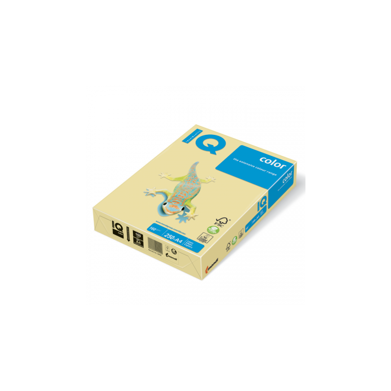 Carton color galben pal, disponibil in format A4, cu un gramaj de 160 g/mp. Gama variata de culori si nuante asigura obtinerea unui impact vizual puternic, permite personalizarea documentelor si rapoartelor, o foarte buna sistematizare, precum si adaugarea de plus valoare documentelor. Cartonul color poate fi utilizat si pentru decoratiuni sau diverse proiecte. Gama de produse IQ poseda o fidelitate ridicata de redare a luminii si o stabilitate ridicata a culorii, fiind destinata in primul rand imprimantelor laser, imprimantelor cu jet de cerneala si copiatoarelor. Ambalare: 250 coli/top.