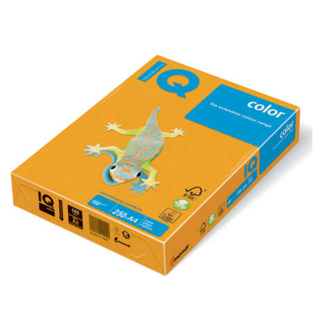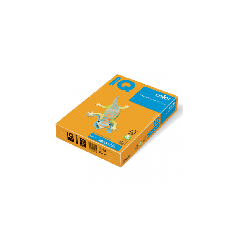 Carton color portocaliu, disponibil in format A4, cu un gramaj de 160 g/mp. Gama variata de culori si nuante asigura obtinerea unui impact vizual puternic, permite personalizarea documentelor si rapoartelor, o foarte buna sistematizare, precum si adaugarea de plus valoare documentelor. Cartonul color poate fi utilizat si pentru decoratiuni sau diverse proiecte. Gama de produse IQ poseda o fidelitate ridicata de redare a luminii si o stabilitate ridicata a culorii, fiind destinata in primul rand imprimantelor laser, imprimantelor cu jet de cerneala si copiatoarelor. Ambalare: 250 coli/top.