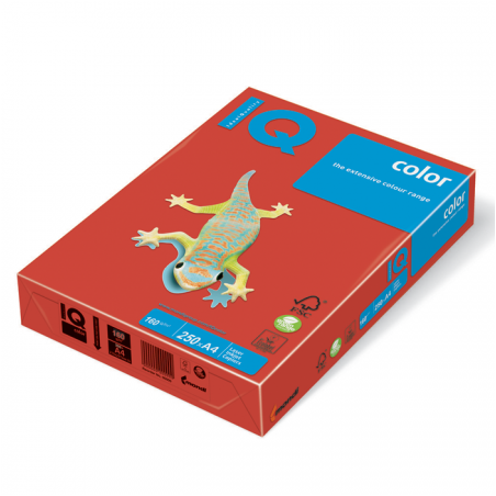 Carton color rosu, disponibil in format A4, cu un gramaj de 160 g/mp. Gama variata de culori si nuante asigura obtinerea unui impact vizual puternic, permite personalizarea documentelor si rapoartelor, o foarte buna sistematizare, precum si adaugarea de plus valoare documentelor. Cartonul color poate fi utilizat si pentru decoratiuni sau diverse proiecte. Gama de produse IQ poseda o fidelitate ridicata de redare a luminii si o stabilitate ridicata a culorii, fiind destinata in primul rand imprimantelor laser, imprimantelor cu jet de cerneala si copiatoarelor. Ambalare: 250 coli/top.