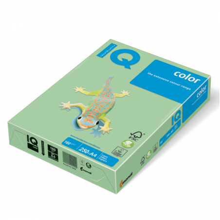 Carton color verde pal, disponibil in format A4, cu un gramaj de 160 g/mp. Gama variata de culori si nuante asigura obtinerea unui impact vizual puternic, permite personalizarea documentelor si rapoartelor, o foarte buna sistematizare, precum si adaugarea de plus valoare documentelor. Cartonul color poate fi utilizat si pentru decoratiuni sau diverse proiecte. Gama de produse IQ poseda o fidelitate ridicata de redare a luminii si o stabilitate ridicata a culorii, fiind destinata in primul rand imprimantelor laser, imprimantelor cu jet de cerneala si copiatoarelor. Ambalare: 250 coli/top.
