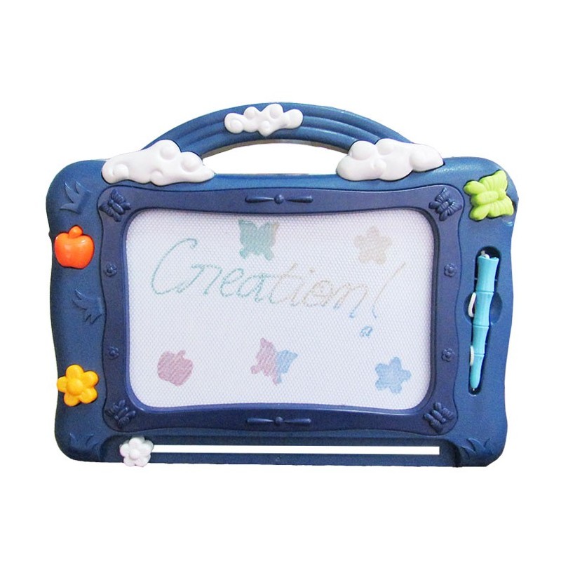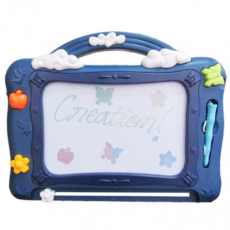 Tablita magica, cu stampile, un mod amuzant si atractiv de a-i invata pe cei mici sa scrie si sa deseneze. Cu aceasta tablita magica de desenat veti avea parte de multa distractie si veti crea o atmosfera magica pentru cei mici. Copiii pot invata sa deseneze cu ajutorul sabloanelor incluse sau pot concepe desene proprii, originale. Tablita se poate folosi in mod repetat. Setul contine tablita magica, 3 stampile, creion si dispozitiv de stergere. Jucaria este confectionata din material plastic nedaunator sanatatii. Produsul este recomandat copiilor cu varste peste 3 ani. Dimensiunea tablitei este: 40x27 cm.