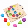 Jucarie educativa realizata din lemn, tip Montessori, potrivita pentru invatarea notiunilor de coordonare si asociere. Jucariile din lemn au fost intotdeauna interesante si sigure pentru copii, acestea contribuind major la dezvoltarea deprinderilor motorii si perceptiei senzoriale ale copiilor. Cu ajutorul jucariilor din lemn, copilul isi dezvolta motricitatea fina, coordonarea ochi-mana, orientarea in spatiu, competenta de a recunoaste culori si forme diferite, atentia si imaginatia, toate acestea intr-un mod distractiv si in deplina siguranta. Cutia contine diverse forme din lemn, si o undita cu ajutorul careia cel mic se poate distra pescuind formele, si rearanjandu-le la locul lor. Dimensiunile cutiei sunt urmatoarele: 20.5x20x6 cm. Produsul nu este recomandat copiilor mai mici de 3 ani. Se recomanda utilizarea produsului de catre copiii mai mari de 3 ani. Produsul poate fi curatat cu o carpa moale, uscata.