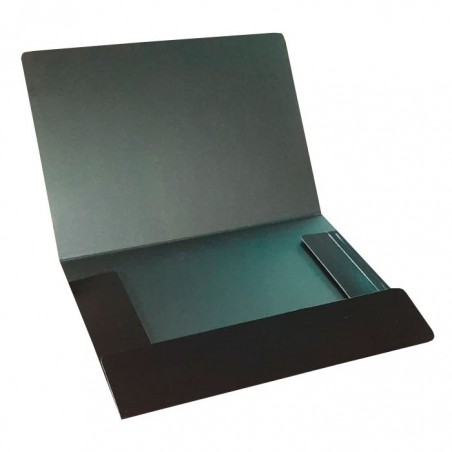 Mapa clasica fabricata din carton de calitate foarte buna, cu un gramaj de 700 g/mp, in culori vibrante. Mapa are un sistem de inchidere ce consta intr-o banda elastica, deosebit de rezistenta. Mapa este prevazuta cu 3 clape cu colturile rotunjite, ceea ce asigura o foarte buna pastrare a documentelor. Capacitatea maxima de stocare este de 250 coli standard. Mapa este disponibila pe varianta de culoare neagra, avand suprafata lucioasa. Ambalare: 10 mape/set.
