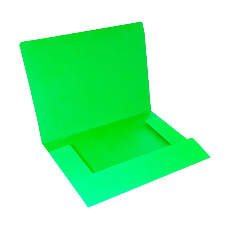 Mapa clasica fabricata din carton de calitate foarte buna, cu un gramaj de 700 g/mp, in culori vibrante. Mapa are un sistem de inchidere ce consta intr-o banda elastica, deosebit de rezistenta. Mapa este prevazuta cu 3 clape cu colturile rotunjite, ceea ce asigura o foarte buna pastrare a documentelor. Capacitatea maxima de stocare este de 250 coli standard. Mapa este disponibila pe varianta de culoare verde fluorescent, avand suprafata lucioasa. Ambalare: 10 mape/set.