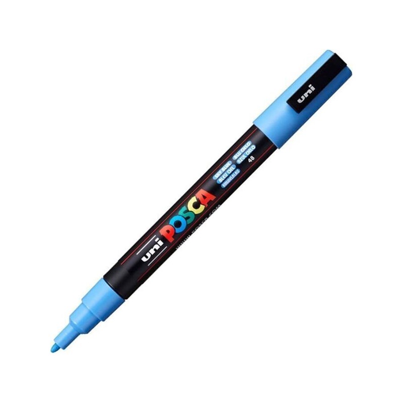 Markerul Posca PC-5M este cel mai universal si versatil produs din gama Posca. Linia curata, clara si precisa, precum si acoperirea perfecta a culorilor i-au permis sa castige o multime de suporteri printre profesionisti si amatori. Vopseaua de marker este opaca, fluida, neteda, densa si are o putere mare de acoperire. Poate fi amestecat, diluat si aplicat in straturi. Rezultatele sunt similare cu cele care se pot obtine cu vopseaua acrilica. Culorile pot fi amestecate direct pe suport atata timp cat vopseaua este inca umeda. Datorita timpului scurt de uscare, se pot aplica straturi succesive minut cu minut. Culorile deschise pot fi aplicate peste cele inchise fara teama. Vopseaua poate fi diluata pentru a obtine un efect de gradare a culorii, adica estompare. Principalele avantaje ale markerelor Posca sunt urmatoarele: cerneala nu se inmoaie prin hartie, produsul nu este toxic (poate fi folosit pentru vopsit pe corp), culorile diferite nu se combina dupa ce se usuca cerneala, rezistent la lumina si conditiile meteorologice, cerneala pigmentara unica pe baza de apa. Sunt potrivite pentru scris pe materiale precum: sticla, metal, lemn, plastic, stofa, portelan, teracota, hartie, lemn si chiar pe corp. Cine poate folosi markere Posca? Acest produs se adreseaza in primul rand: artistilor, artistilor graffiti, arhitectilor si designerilor, mestesugarilor pasionati de decorarea obiectelor sau realizarea decoratiunilor interioare, surferilor si skaterilor care isi doresc o “fata” noua pentru placile lor, studentilor si copiilor de toate varstele! Este perfect pentru uz profesional, potrivit pentru iubitorii de artizanat, in special scrapbooking si crearea de felicitari, pentru realizarea finisajelor, detaliilor si contururilor. Datorita markerelor Posca, puteti proiecta un tricou sau o sapca cu vizor - doar calcati materialul si modelul va fi durabil. Produsul poate fi folosit si pentru a decora vitrine, instrumente muzicale, echipamente sportive sau chiar o masina! Cum poate fi pastrata culoarea? Supraacoperire cu lac incolor pentru sticla, plastic, metal, lemn, hartie sau teracota foc in cuptor la aproximativ 180° C pentru produse ceramice si fierul de calcat pentru materiale textile. Markerul este disponibil pe varianta de culoare albastru sky.