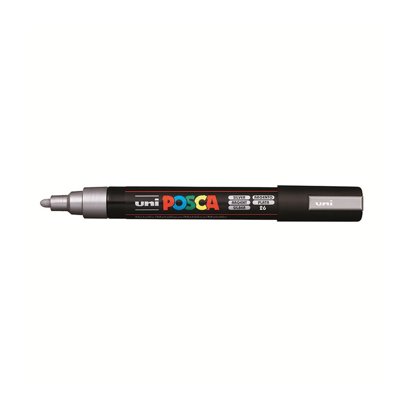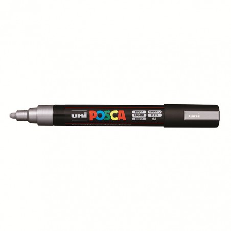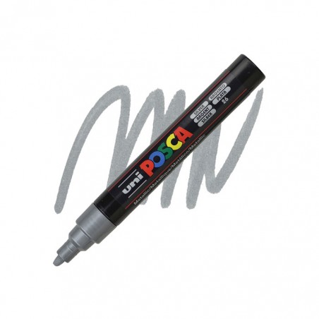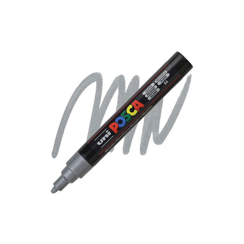 Markerul Posca PC-5M este cel mai universal si versatil produs din gama Posca. Linia curata, clara si precisa, precum si acoperirea perfecta a culorilor i-au permis sa castige o multime de suporteri printre profesionisti si amatori. Vopseaua de marker este opaca, fluida, neteda, densa si are o putere mare de acoperire. Poate fi amestecat, diluat si aplicat in straturi. Rezultatele sunt similare cu cele care se pot obtine cu vopseaua acrilica. Culorile pot fi amestecate direct pe suport atata timp cat vopseaua este inca umeda. Datorita timpului scurt de uscare, se pot aplica straturi succesive minut cu minut. Culorile deschise pot fi aplicate peste cele inchise fara teama. Vopseaua poate fi diluata pentru a obtine un efect de gradare a culorii, adica estompare. Principalele avantaje ale markerelor Posca sunt urmatoarele: cerneala nu se inmoaie prin hartie, produsul nu este toxic (poate fi folosit pentru vopsit pe corp), culorile diferite nu se combina dupa ce se usuca cerneala, rezistent la lumina si conditiile meteorologice, cerneala pigmentara unica pe baza de apa. Sunt potrivite pentru scris pe materiale precum: sticla, metal, lemn, plastic, stofa, portelan, teracota, hartie, lemn si chiar pe corp. Cine poate folosi markere Posca? Acest produs se adreseaza in primul rand: artistilor, artistilor graffiti, arhitectilor si designerilor, mestesugarilor pasionati de decorarea obiectelor sau realizarea decoratiunilor interioare, surferilor si skaterilor care isi doresc o “fata” noua pentru placile lor, studentilor si copiilor de toate varstele! Este perfect pentru uz profesional, potrivit pentru iubitorii de artizanat, in special scrapbooking si crearea de felicitari, pentru realizarea finisajelor, detaliilor si contururilor. Datorita markerelor Posca, puteti proiecta un tricou sau o sapca cu vizor - doar calcati materialul si modelul va fi durabil. Produsul poate fi folosit si pentru a decora vitrine, instrumente muzicale, echipamente sportive sau chiar o masina! Cum poate fi pastrata culoarea? Supraacoperire cu lac incolor pentru sticla, plastic, metal, lemn, hartie sau teracota foc in cuptor la aproximativ 180° C pentru produse ceramice si fierul de calcat pentru materiale textile. Markerul este disponibil pe varianta de culoare argintiu.