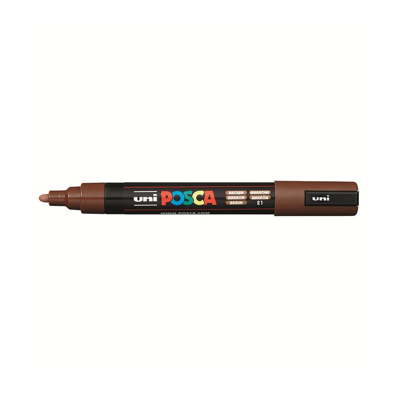 Markerul Posca PC-5M este cel mai universal si versatil produs din gama Posca. Linia curata, clara si precisa, precum si acoperirea perfecta a culorilor i-au permis sa castige o multime de suporteri printre profesionisti si amatori. Vopseaua de marker este opaca, fluida, neteda, densa si are o putere mare de acoperire. Poate fi amestecat, diluat si aplicat in straturi. Rezultatele sunt similare cu cele care se pot obtine cu vopseaua acrilica. Culorile pot fi amestecate direct pe suport atata timp cat vopseaua este inca umeda. Datorita timpului scurt de uscare, se pot aplica straturi succesive minut cu minut. Culorile deschise pot fi aplicate peste cele inchise fara teama. Vopseaua poate fi diluata pentru a obtine un efect de gradare a culorii, adica estompare. Principalele avantaje ale markerelor Posca sunt urmatoarele: cerneala nu se inmoaie prin hartie, produsul nu este toxic (poate fi folosit pentru vopsit pe corp), culorile diferite nu se combina dupa ce se usuca cerneala, rezistent la lumina si conditiile meteorologice, cerneala pigmentara unica pe baza de apa. Sunt potrivite pentru scris pe materiale precum: sticla, metal, lemn, plastic, stofa, portelan, teracota, hartie, lemn si chiar pe corp. Cine poate folosi markere Posca? Acest produs se adreseaza in primul rand: artistilor, artistilor graffiti, arhitectilor si designerilor, mestesugarilor pasionati de decorarea obiectelor sau realizarea decoratiunilor interioare, surferilor si skaterilor care isi doresc o “fata” noua pentru placile lor, studentilor si copiilor de toate varstele! Este perfect pentru uz profesional, potrivit pentru iubitorii de artizanat, in special scrapbooking si crearea de felicitari, pentru realizarea finisajelor, detaliilor si contururilor. Datorita markerelor Posca, puteti proiecta un tricou sau o sapca cu vizor - doar calcati materialul si modelul va fi durabil. Produsul poate fi folosit si pentru a decora vitrine, instrumente muzicale, echipamente sportive sau chiar o masina! Cum poate fi pastrata culoarea? Supraacoperire cu lac incolor pentru sticla, plastic, metal, lemn, hartie sau teracota; foc in cuptor la aproximativ 180° C pentru produse ceramice si fierul de calcat pentru materiale textile. Markerul este disponibil pe varianta de culoare maro.