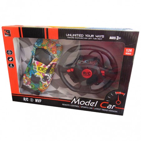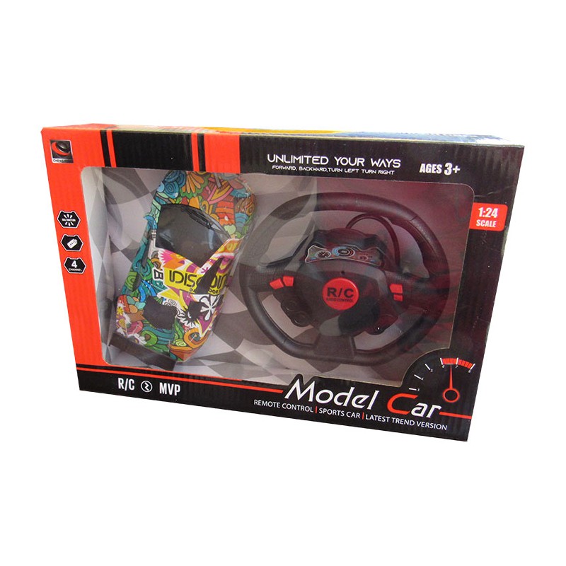 Masina cu volan, cu radio-comanda este jucaria ideala pentru orice copil care este pasionat de masi-ni. Jucandu-se cu masina, copiii isi dezvolta imaginatia, creativitatea, isi imbunatatesc abilitatile cognitive si vizuale, isi dezvolta simtul de responsabilitate, motricitatea fina si coordonarea. For-mele speciale si culorile vii incurajeaza copilul sa exerseze si sa se joace, stimuland astfel dezvol-tarea individuala. Executia robusta si culorile vibrante vor atrage cu siguranta atentia si curiozitatea oricarui copil. Masina functioneaza cu 3 baterii tip AA (1,5V), iar volanul functioneaza cu 2 baterii tip AA (1,5 V). Functiile volanului permit deplasarea inainte/inapoi, stanga/dreapta. Lungimea mas-inii este de aproximativ 16 cm, iar diamentrul volanului este de aproximativ 13 cm. Dimensiunile cutiei sunt urmatoarele: 30x20x7 cm. Pentru a curata masina, se recomanda folosirea unei lavete umede. Produsul nu este recomandat copiilor mai mici de 3 ani. Se recomanda utilizarea produsului de catre copiii mai mari de 3 ani.
