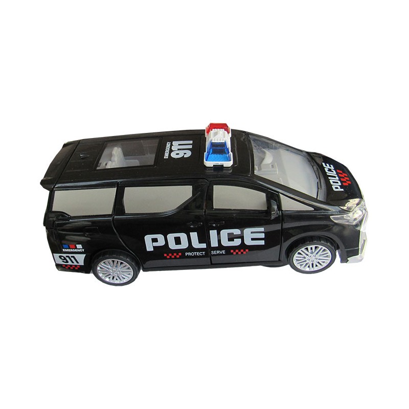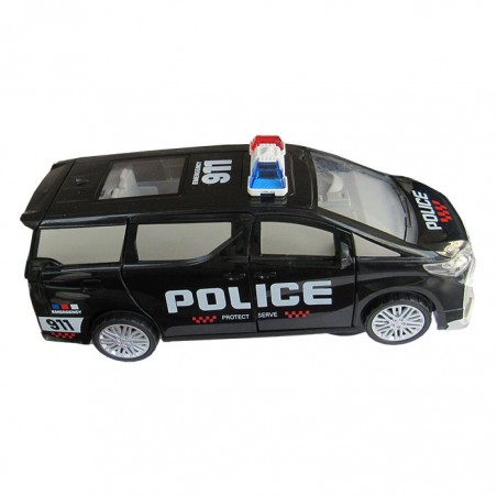 Masina de politie cu baterii este jucaria ideala pentru orice copil care este pasionat de masini. Aceasta jucarie imita realitatea si este foarte atractiva, datorita design-ului modern, apropiat realitatii. Jucandu-se cu masina, copiii isi dezvolta imaginatia, creativitatea, isi imbunatatesc abilitatile cognitive si vizuale, isi dezvolta simtul de responsabilitate, motricitatea fina si coordonarea. Formele speciale si culorile vii incurajeaza copilul sa exerseze si sa se joace, stimuland astfel dezvoltarea individuala. Executia robusta si culorile placute vor atrage cu siguranta atentia si curiozitatea oricarui copil. Masina emite sunete si lumini (functioneaza cu 3 baterii AA). Portiera soferului se poate deschide si inchide. Dimensiunile cutiei sunt urmatoarele: 23x10x10.5 cm. Pentru a curata masina, se recomanda folosirea unei lavete umede. Produsul nu este recomandat copiilor mai mici de 3 ani. Se recomanda utilizarea produsului de catre copiii mai mari de 3 ani.