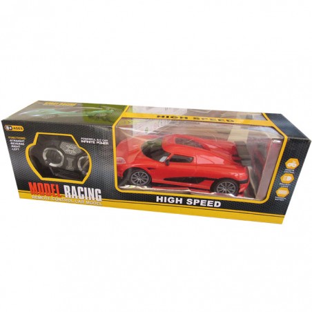 Masina cu radio-comanda este jucaria ideala pentru orice copil care este pasionat de masini. Jucan-du-se cu masina, copiii isi dezvolta imaginatia, creativitatea, isi imbunatatesc abilitatile cognitive si vizuale, isi dezvolta simtul de responsabilitate, motricitatea fina si coordonarea. Formele speciale si culorile vii incurajeaza copilul sa exerseze si sa se joace, stimuland astfel dezvoltarea individuala. Executia robusta si culorile vibrante vor atrage cu siguranta atentia si curiozitatea oricarui copil. Masina functioneaza cu 3 baterii tip AA (1,5V), iar telecomanda functioneaza cu 2 baterii tip AA (1,5 V). Functiile telecomenzii permit deplasarea inainte/inapoi, stanga/dreapta. Lungimea masinii este de aproximativ 17 cm. Dimensiunile cutiei sunt urmatoarele: 35x11.5x9 cm. Pentru a curata masina, se recomanda folosirea unei lavete umede. Produsul nu este recomandat copiilor mai mici de 3 ani. Se recomanda utilizarea produsului de catre copiii mai mari de 3 ani.