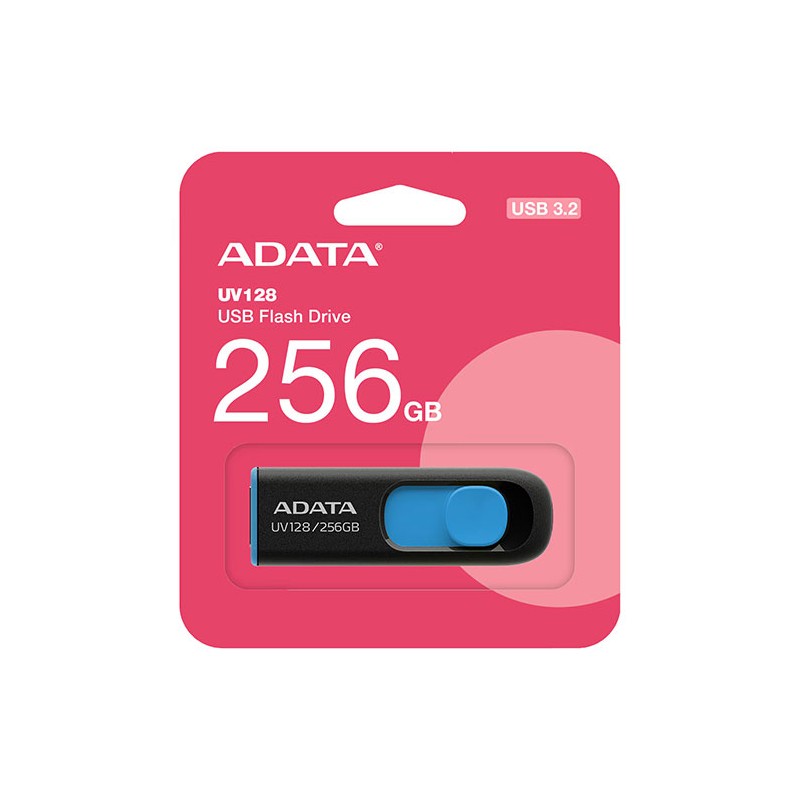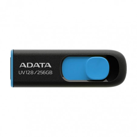 Adata UV128 este o unitate flash USB de culoare neagra cu accente albastre, ce ofera un spatiu de 256 GB ideal pentru stocarea de muzica, imagini, filme sau documente. Scapati de teama de a pierde capacul stick-ului pentru totdeauna! Unitatea USB Adata UV128 este dotata cu un me-canism de alunecare, care permite retractarea conectorului in corpul unitatii, astfel protejandu-l. Carcasa cu textura mata este rezistenta la zgarieturi si murdarie. Adata UV128 este compatibil cu porturile USB 3.2. Dimensiuni: 60x20x9 mm.