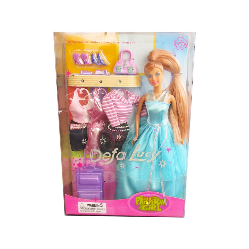 Papusa Defa Lucy este o papusa deosebita, care va aduce multa bucurie si veselie copiilor, devenind cea mai buna partenera de joaca a acestora. Copiii pot invata cum sa aiba grija de papusa, sa o plimbe, sa o hraneasca, sa o schimbe de hainute sau sa o puna la somn. Jocul cu papusa contribuie la dezvoltarea comunicarii, imaginatiei si responsabilitatii, si imbunatateste motricitatea fina, coordonarea si dezvoltarea emotionala a copiilor. Papusa Defa Lucy poarta o rochita eleganta, de culoare albastra. Papusa are trei seturi de haine de schimb. Cutia contine diverse accesorii, precum: un troller, doua perechi de pantofi, o poseta, un aparat foto si un binoclu. Papusa are ochii mari si expresivi, de culoare albastra. Lungimea papusii este de aproximativ 29 cm. Dimensiunile cutiei sunt urmatoarele: 31x19x5 cm. Pentru a curata papusa, se recomanda folosirea unei lavete umede. Produsul nu este recomandat copiilor mai mici de 3 ani. Se recomanda utilizarea produsului de catre copiii mai mari de 3 ani.