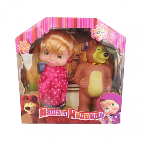 Papusa Masha este o papusa deosebita pe care orice fetita si-o doreste, o incantatoare reprezentare a celebrului personaj din Masha si Ursul. Jocul cu papusa Masha contribuie la dezvoltarea comunicarii, imaginatiei si responsabilitatii, si imbunatateste motricitatea fina, coordonarea si dezvoltarea emotionala a copiilor. Masha este o fetita zburdalnica, plina de energie, care trebuie sa stie tot si sa fie prezenta peste tot, in acelasi timp! Curiozitatea ei nu cunoaste limite, trebuie sa examineze si sa incerce tot ce ii apare in cale. Niciodata nu e trista si nu ii este frica de nimic. Mashei, ca oricarui copil, ii plac mult dulcurile, in special acadelele. E extrem de prietenoasa si ii trateaza pe toti de parca s-ar cunoaste de o viata intreaga. Papusa este imbracata in binecunoscuta ei rochita. Masha il are alaturi si pe Mishka, ursul ei, care o iubeste ca pe propriul copil. Dimensiunile cutiei sunt urmatoarele: 18x18.5x6.5 cm. Pentru a curata papusa, se recomanda folosirea unei lavete umede. Produsul nu este recomandat copiilor mai mici de 3 ani. Se recomanda utilizarea produsului de catre copiii mai mari de 3 ani.