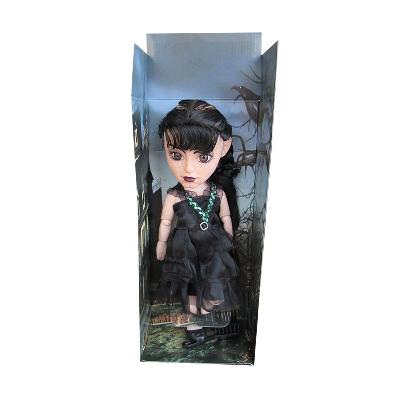 Papusa Wednesday este o papusa deosebita. Jocul cu papusa contribuie la dezvoltarea comunicarii, imaginatiei si responsabilitatii, si imbunatateste motricitatea fina, coordonarea si dezvoltarea emotionala a copiilor. Papusa imita foarte bine personajul din film. Papusa este imbracata in binecunoscuta ei rochita, are doua codite impletite si pantofiori in picioare. Lungimea papusii este de aproximativ 33 cm. Dimensiunile cutiei sunt urmatoarele: 36x16x9 cm. Pentru a curata papusa, se recomanda folosirea unei lavete umede. Produsul nu este recomandat copiilor mai mici de 3 ani. Se recomanda utilizarea produsului de catre copiii mai mari de 3 ani.
