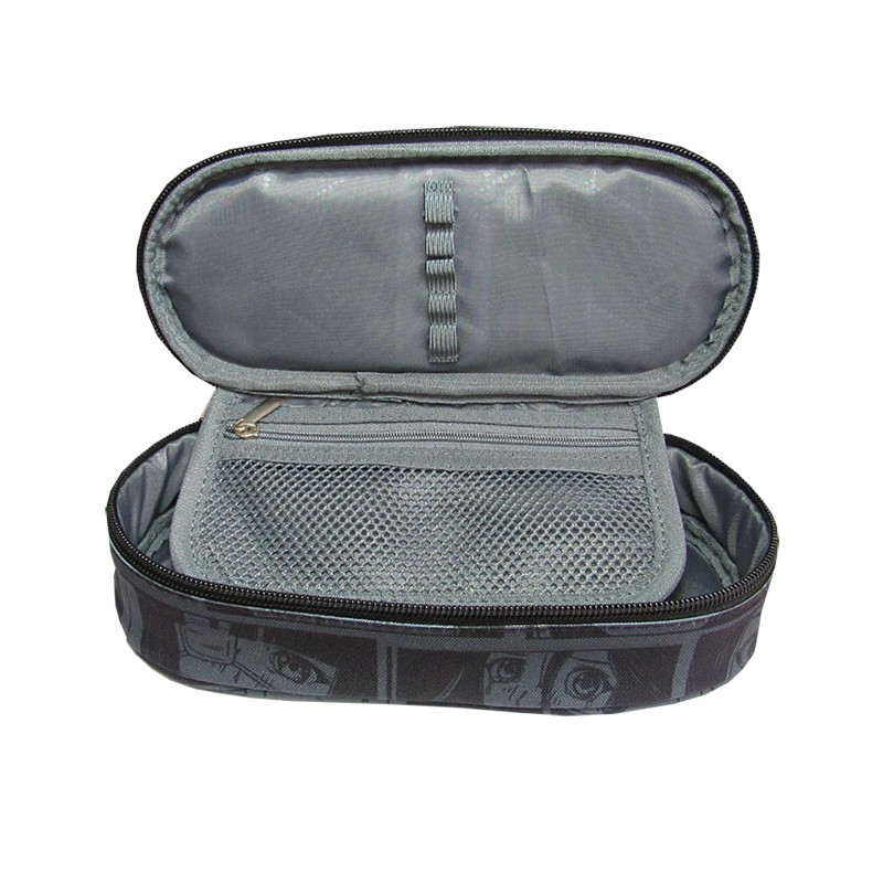 Penar borseta 1 compartiment, 1 extensie, oval, Majewski, Colectia Black Anime, un penar compact, dar spatios in acelasi timp. Penarul este realizat dintr-un material textil, rezistent si impermeabil. Penarul are o forma ovala ergonomica si este prevazut cu doua fermoare rezistente. Penarul dispune de o capacitate mare de echipare, oferind suficient spatiu pentru diverse rechizite: rigla, ascutitoare, compas, instrumente de scris sau instrumente de colorat. Penarul este dotat cu o extensie, care este prevazuta cu elastice pentru fixarea instrumentelor de scris, precum si cu un buzunar interior ce se inchide cu fermoar. Dimensiunile penarului sunt urmatoarele: 20.5x9.5x5 cm.