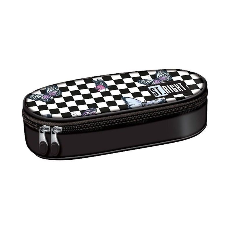 Penar borseta 1 compartiment, 1 extensie, oval, Majewski, Colectia Chessboard Butterflies, un penar compact, dar spatios in acelasi timp. Penarul este realizat dintr-un material textil, rezistent si impermeabil. Penarul are o forma ovala ergonomica si este prevazut cu doua fermoare rezistente. Penarul dispune de o capacitate mare de echipare, oferind suficient spatiu pentru diverse rechizite: rigla, ascutitoare, compas, instrumente de scris sau instrumente de colorat. Penarul este dotat cu o extensie, care este prevazuta cu elastice pentru fixarea instrumentelor de scris, precum si cu un buzunar interior ce se inchide cu fermoar. Dimensiunile penarului sunt urmatoarele: 20.5x9.5x5 cm.