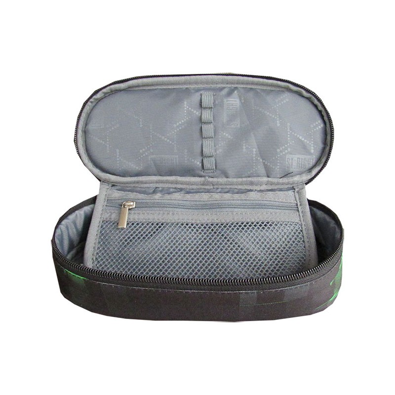 Penar borseta 1 compartiment, 1 extensie, oval, Majewski, Colectia Green Game, un penar compact, dar spatios in acelasi timp. Penarul este realizat dintr-un material textil, rezistent si impermeabil. Penarul are o forma ovala ergonomica si este prevazut cu doua fermoare rezistente. Penarul dispune de o capacitate mare de echipare, oferind suficient spatiu pentru diverse rechizite: rigla, ascutitoare, compas, instrumente de scris sau instrumente de colorat. Penarul este dotat cu o extensie, care este prevazuta cu elastice pentru fixarea instrumentelor de scris, precum si cu un buzunar interior ce se inchide cu fermoar. Dimensiunile penarului sunt urmatoarele: 20.5x9.5x5 cm.