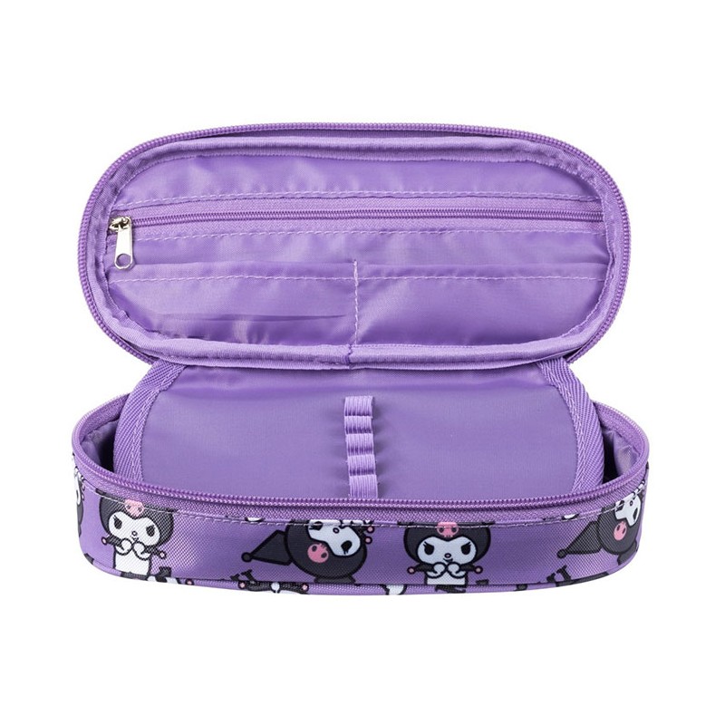 Penar borseta 1 compartiment, 1 extensie, oval, Majewski, Colectia Kuromi Violet 2025, un penar compact, dar spatios in acelasi timp. Penarul este realizat dintr-un material textil, rezistent si im-permeabil. Penarul are o forma ovala ergonomica si este prevazut cu doua fermoare rezistente. Penarul dispune de o capacitate mare de echipare, oferind suficient spatiu pentru diverse rechizite: rigla, ascutitoare, compas, instrumente de scris sau instrumente de colorat. Penarul este dotat cu o extensie, care este prevazuta cu elastice pentru fixarea instrumentelor de scris, precum si cu un buzunar interior ce se inchide cu fermoar. Dimensiunile penarului sunt urmatoarele: 20.5x9.5x5 cm.