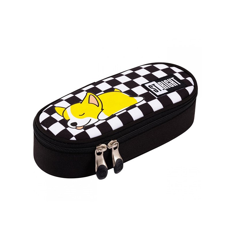 Penar borseta 1 compartiment, 1 extensie, oval, Majewski, Colectia Sleepy Corgi, un penar compact, dar spatios in acelasi timp. Penarul este realizat dintr-un material textil, rezistent si impermeabil. Penarul are o forma ovala ergonomica si este prevazut cu doua fermoare rezistente. Penarul dispune de o capacitate mare de echipare, oferind suficient spatiu pentru diverse rechizite: rigla, ascutitoare, compas, instrumente de scris sau instrumente de colorat. Penarul este dotat cu o extensie, care este prevazuta cu elastice pentru fixarea instrumentelor de scris, precum si cu un buzunar interior ce se inchide cu fermoar. Dimensiunile penarului sunt urmatoarele: 20.5x9.5x5 cm.