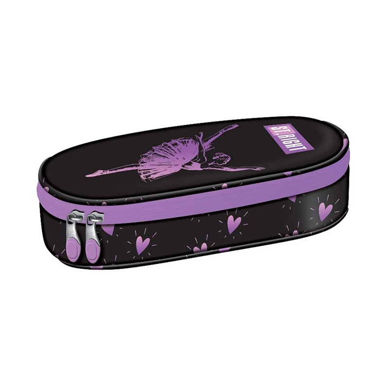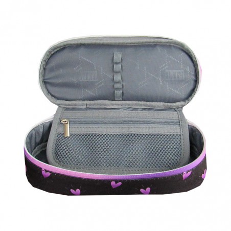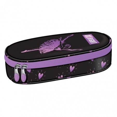 Penar borseta 1 compartiment, 1 extensie, oval, Majewski, Colectia Ballerina, un penar compact, dar spatios in acelasi timp. Penarul este realizat dintr-un material textil, rezistent si impermeabil. Penarul are o forma ovala ergonomica si este prevazut cu doua fermoare rezistente. Penarul dispune de o capacitate mare de echipare, oferind suficient spatiu pentru diverse rechizite: rigla, ascutitoare, compas, instrumente de scris sau instrumente de colorat. Penarul este dotat cu o extensie, care este prevazuta cu elastice pentru fixarea instrumentelor de scris, precum si cu un buzunar interior ce se inchide cu fermoar. Dimensiunile penarului sunt urmatoarele: 20.5x9.5x5 cm.