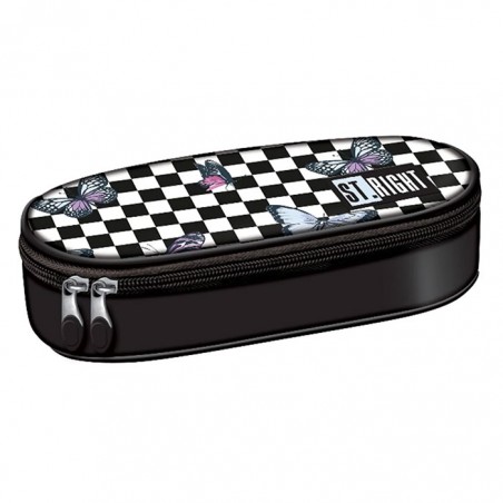 Penar borseta 1 compartiment, 1 extensie, oval, Majewski, Colectia Chessboard Butterflies, un penar compact, dar spatios in acelasi timp. Penarul este realizat dintr-un material textil, rezistent si impermeabil. Penarul are o forma ovala ergonomica si este prevazut cu doua fermoare rezistente. Penarul dispune de o capacitate mare de echipare, oferind suficient spatiu pentru diverse rechizite: rigla, ascutitoare, compas, instrumente de scris sau instrumente de colorat. Penarul este dotat cu o extensie, care este prevazuta cu elastice pentru fixarea instrumentelor de scris, precum si cu un buzunar interior ce se inchide cu fermoar. Dimensiunile penarului sunt urmatoarele: 20.5x9.5x5 cm.