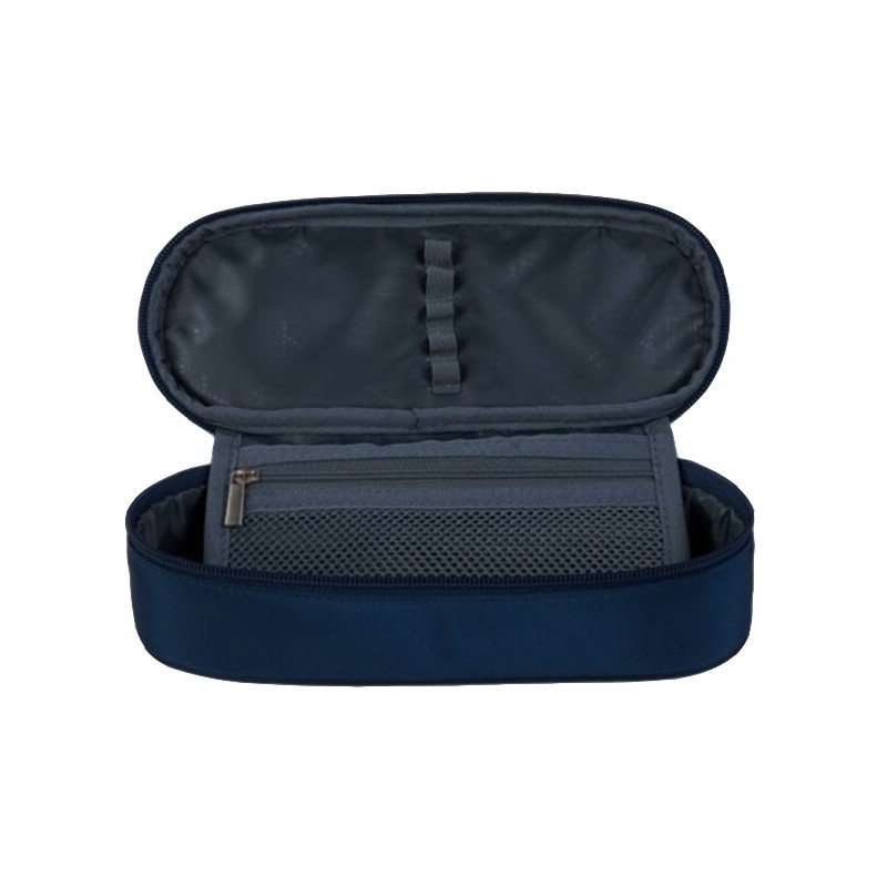 Penar borseta 1 compartiment, 1 extensie, oval, Majewski, Colectia Navy Blue, un penar compact, dar spatios in acelasi timp. Penarul este realizat dintr-un material textil, rezistent si impermeabil. Penarul are o forma ovala ergonomica si este prevazut cu doua fermoare rezistente. Penarul dispune de o capacitate mare de echipare, oferind suficient spatiu pentru diverse rechizite: rigla, ascutitoare, compas, instrumente de scris sau instrumente de colorat. Penarul este dotat cu o extensie, care este prevazuta cu elastice pentru fixarea instrumentelor de scris, precum si cu un buzunar interior ce se inchide cu fermoar. Dimensiunile penarului sunt urmatoarele: 20.5x9.5x5 cm.