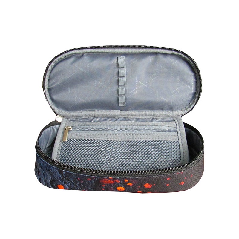 Penar borseta 1 compartiment, 1 extensie, oval, Majewski, Colectia Red Planet, un penar compact, dar spatios in acelasi timp. Penarul este realizat dintr-un material textil, rezistent si impermeabil. Penarul are o forma ovala ergonomica si este prevazut cu doua fermoare rezistente. Penarul dispune de o capacitate mare de echipare, oferind suficient spatiu pentru diverse rechizite: rigla, ascutitoare, compas, instrumente de scris sau instrumente de colorat. Penarul este dotat cu o extensie, care este prevazuta cu elastice pentru fixarea instrumentelor de scris, precum si cu un buzunar interior ce se inchide cu fermoar. Dimensiunile penarului sunt urmatoarele: 20.5x9.5x5 cm.