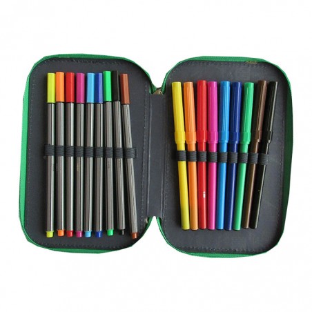 Penar echipat, prevazut cu 3 fermoare, Majewski, Gama St. Right, Colectia Green Game, un penar compact si spatios. Penarul este realizat dintr-un material textil, de foarte buna calitate, rezistent si impermeabil. Penarul este prevazut cu trei compartimente si dispune de o capacitate mare de echipare, oferind suficient spatiu pentru diverse rechizite. Penarul este echipat cu urmatoarele rechizite: 1 rigla de 15 cm, 1 radiera, 1 ascutitoare, 9 carioci, 9 linere, 18 creioane colorate, 2 creioane grafit, 2 pixuri, 1 compas, 1 echer, 1 raportor si 1 orar. Fermoarele penarului sunt rezistente, dotate cu o zona de prindere cauciucata si profilata, pentru prindere usoara. Dimensiunile penarului sunt urmatoarele: 20x13x6 cm.