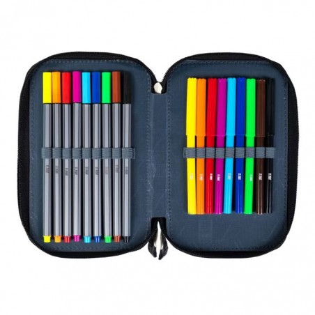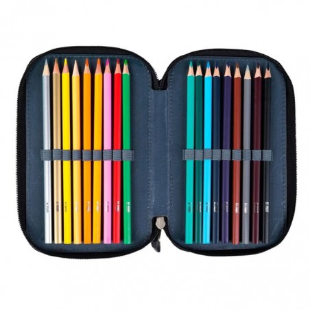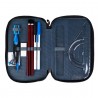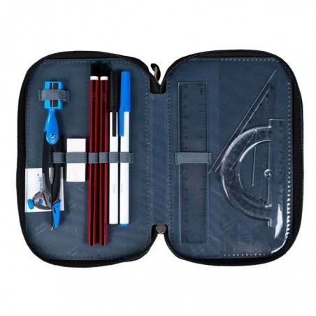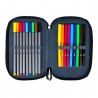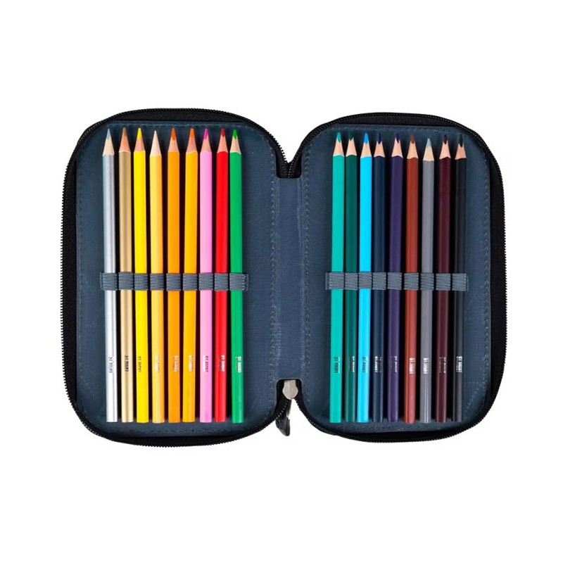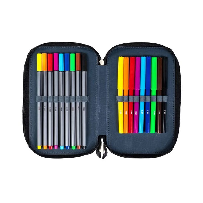 Penar echipat, prevazut cu 3 fermoare, Majewski, Gama St. Right, Colectia Moro, un penar compact si spatios. Penarul este realizat dintr-un material textil, de foarte buna calitate, rezistent si impermeabil. Penarul este prevazut cu trei compartimente si dispune de o capacitate mare de echipare, oferind suficient spatiu pentru diverse rechizite. Penarul este echipat cu urmatoarele rechizite: 1 rigla de 15 cm, 1 radiera, 1 ascutitoare, 9 carioci, 9 linere, 18 creioane colorate, 2 creioane grafit, 2 pixuri, 1 compas, 1 echer, 1 raportor si 1 orar. Fermoarele penarului sunt rezistente, dotate cu o zona de prindere cauciucata si profilata, pentru prindere usoara. Dimensiunile penarului sunt urmatoarele: 20x13x6 cm.